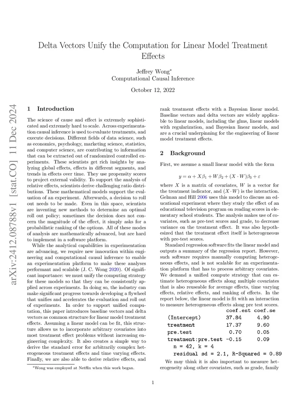 The science of cause and effect is extremely sophisticated and extremely hard to scale. Using a controlled experiment, scientists get rich insights by analyzing global effects, effects in different segments, and trends in effects over time. They use propensity scores to project external validity. To support the analysis of relative effects, scientists derive challenging ratio distributions. While the analytical capabilities in experimentation are advancing, we require new innovation within engineering and computational causal inference to enable an experimentation platform to make analyses performant and scalable. Of significant importance: we must unify the computing strategy for these models so that they can be consistently applied across experiments. In doing so, the industry can make significant progress towards developing a flywheel that unifies and accelerates the evaluation and roll out of experiments. In order to support unified computation, this paper introduces baseline vectors and delta vectors as common structure for estimating treatment effects. This common structure allows many statistics to be subsumed into a single API. The nature of its algebraic formulation allows linear algebra libraries to vectorize and optimize its performance, creating a single and efficient tool to support the many innovations in experimentation.