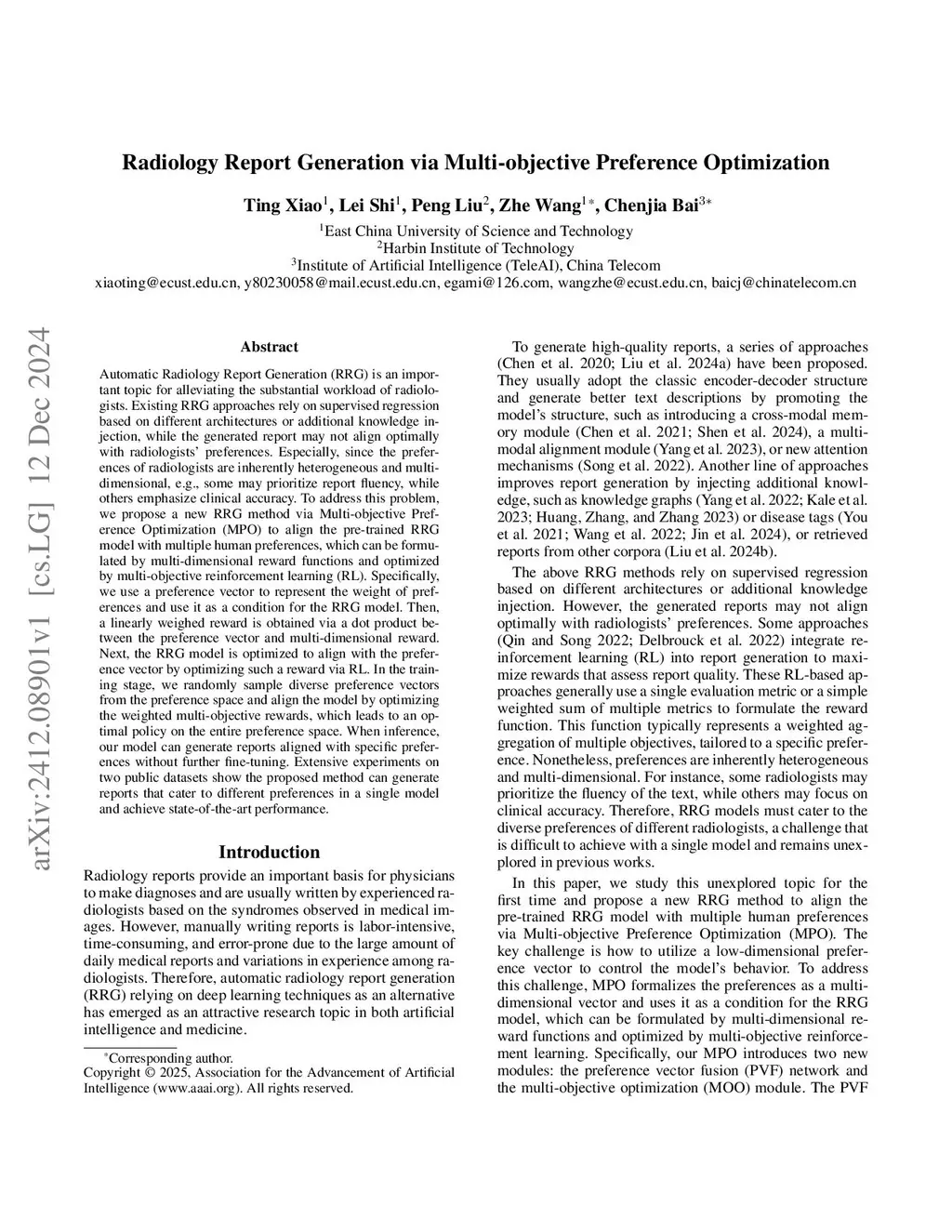 Radiology Report Generation via Multi-objective Preference Optimization