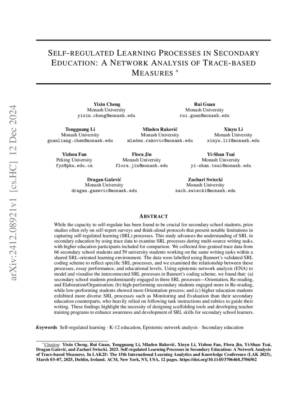 Self-regulated Learning Processes in Secondary Education: A Network
