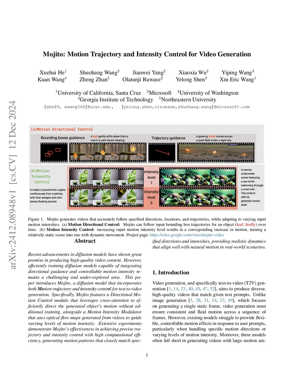 Mojito: Motion Trajectory and Intensity Control for Video Generation