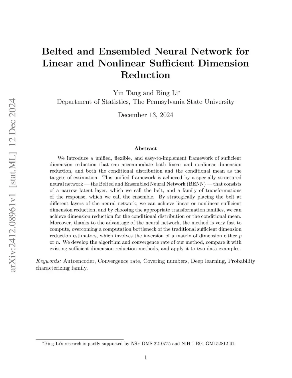 Belted and Ensembled Neural Network for Linear and Nonlinear Sufficient Dimension Reduction