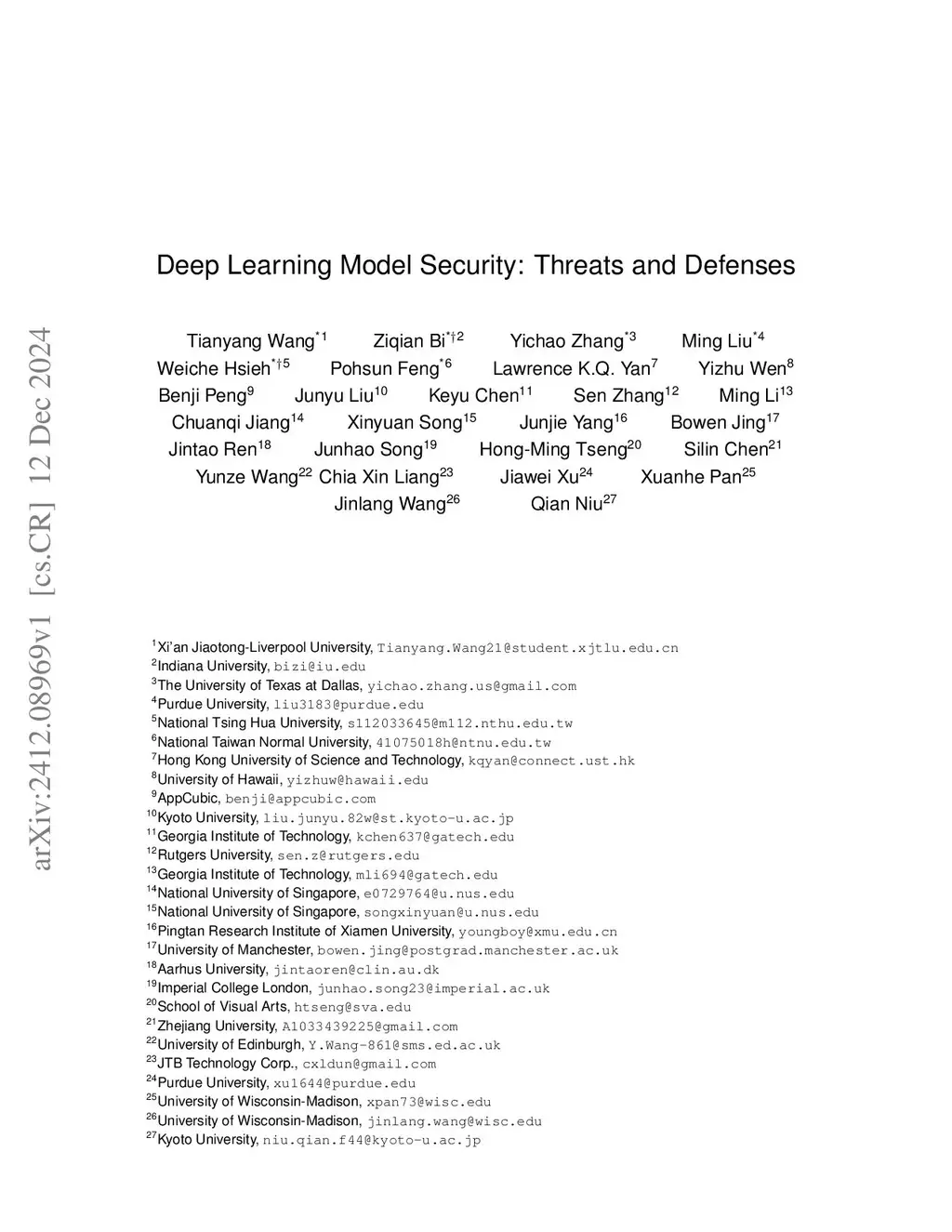 Deep learning has transformed AI applications but faces critical security challenges, including adversarial attacks, data poisoning, model theft, and privacy leakage. This survey examines these vulnerabilities, detailing their mechanisms and impact on model integrity and confidentiality. Practical implementations, including adversarial examples, label flipping, and backdoor attacks, are explored alongside defenses such as adversarial training, differential privacy, and federated learning, highlighting their strengths and limitations. Advanced methods like contrastive and self-supervised learning are presented for enhancing robustness. The survey concludes with future directions, emphasizing automated defenses, zero-trust architectures, and the security challenges of large AI models. A balanced approach to performance and security is essential for developing reliable deep learning systems.