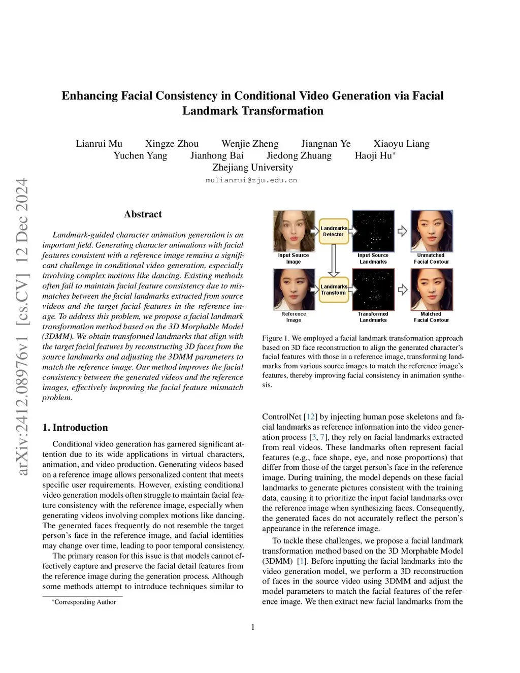 Creating realistic pose-guided image-to-video character animations while preserving facial identity remains challenging, especially in complex and dynamic scenarios such as dancing, where precise identity consistency is crucial. Existing methods frequently encounter difficulties maintaining facial coherence due to misalignments between facial landmarks extracted from driving videos that provide head pose and expression cues and the facial geometry of the reference images. To address this limitation, we introduce the Facial Landmarks Transformation (FLT) method, which leverages a 3D Morphable Model to address this limitation. FLT converts 2D landmarks into a 3D face model, adjusts the 3D face model to align with the reference identity, and then transforms them back into 2D landmarks to guide the image-to-video generation process. This approach ensures accurate alignment with the reference facial geometry, enhancing the consistency between generated videos and reference images. Experimental results demonstrate that FLT effectively preserves facial identity, significantly improving pose-guided character animation models.
