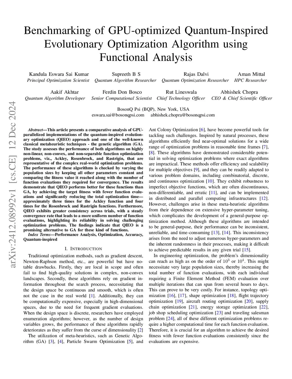 This article presents a comparative analysis of GPU-parallelized implementations of the quantum-inspired evolutionary optimization (QIEO) approach and one of the well-known classical metaheuristic techniques, the genetic algorithm (GA). The study assesses the performance of both algorithms on highly non-linear, non-convex, and non-separable function optimization problems, viz., Ackley, Rosenbrock, and Rastrigin, that are representative of the complex real-world optimization problems. The performance of these algorithms is checked by varying the population sizes by keeping all other parameters constant and comparing the fitness value it reached along with the number of function evaluations they required for convergence. The results demonstrate that QIEO performs better for these functions than GA, by achieving the target fitness with fewer function evaluations and significantly reducing the total optimization time approximately three times for the Ackley function and four times for the Rosenbrock and Rastrigin functions. Furthermore, QIEO exhibits greater consistency across trials, with a steady convergence rate that leads to a more uniform number of function evaluations, highlighting its reliability in solving challenging optimization problems. The findings indicate that QIEO is a promising alternative to GA for these kind of functions.
