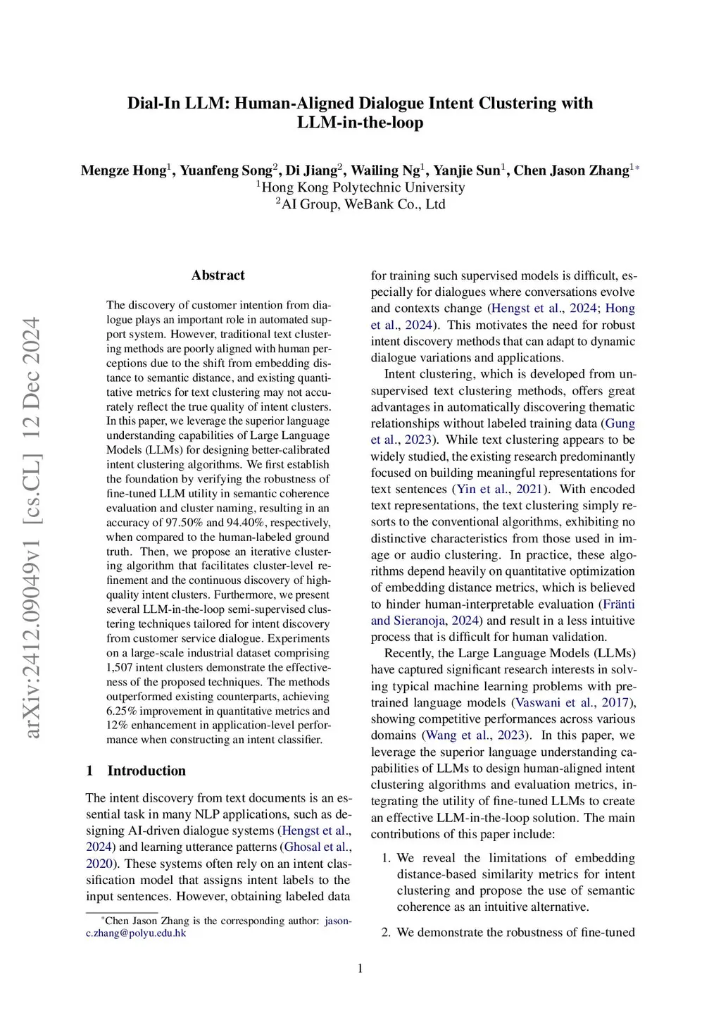 Dial-In LLM: Human-Aligned LLM-in-the-loop Intent Clustering for Customer Service Dialogues
