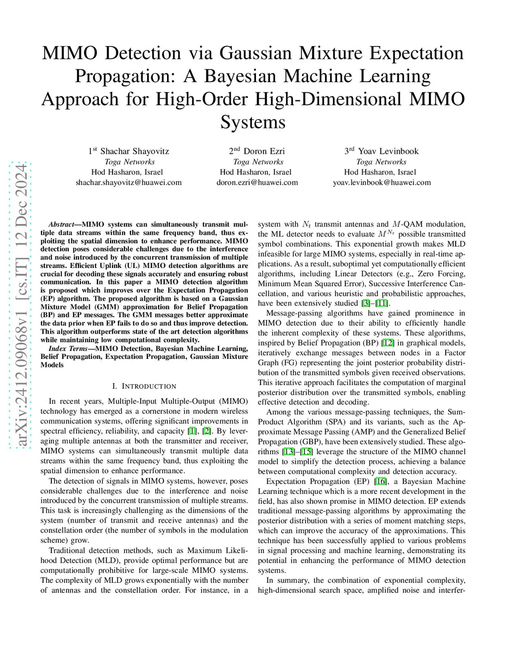 MIMO systems can simultaneously transmit multiple data streams within the same frequency band, thus exploiting the spatial dimension to enhance performance. MIMO detection poses considerable challenges due to the interference and noise introduced by the concurrent transmission of multiple streams. Efficient Uplink (UL) MIMO detection algorithms are crucial for decoding these signals accurately and ensuring robust communication. In this paper a MIMO detection algorithm is proposed which improves over the Expectation Propagation (EP) algorithm. The proposed algorithm is based on a Gaussian Mixture Model (GMM) approximation for Belief Propagation (BP) and EP messages. The GMM messages better approximate the data prior when EP fails to do so and thus improve detection. This algorithm outperforms state of the art detection algorithms while maintaining low computational complexity.