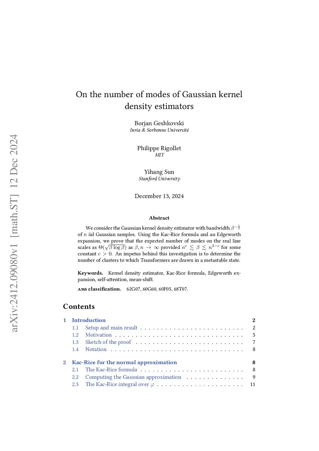 We consider the Gaussian kernel density estimator with bandwidth of iid Gaussian samples. Using the Kac-Rice formula and an Edgeworth expansion, we prove that the expected number of modes on the real line scales as as provided for some constant . An impetus behind this investigation is to determine the number of clusters to which Transformers are drawn in a metastable state.