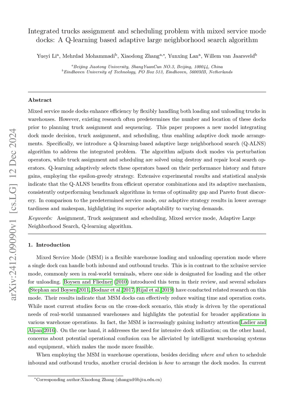 mode docks: A Q-learning based adaptive large neighborhood search algorithm