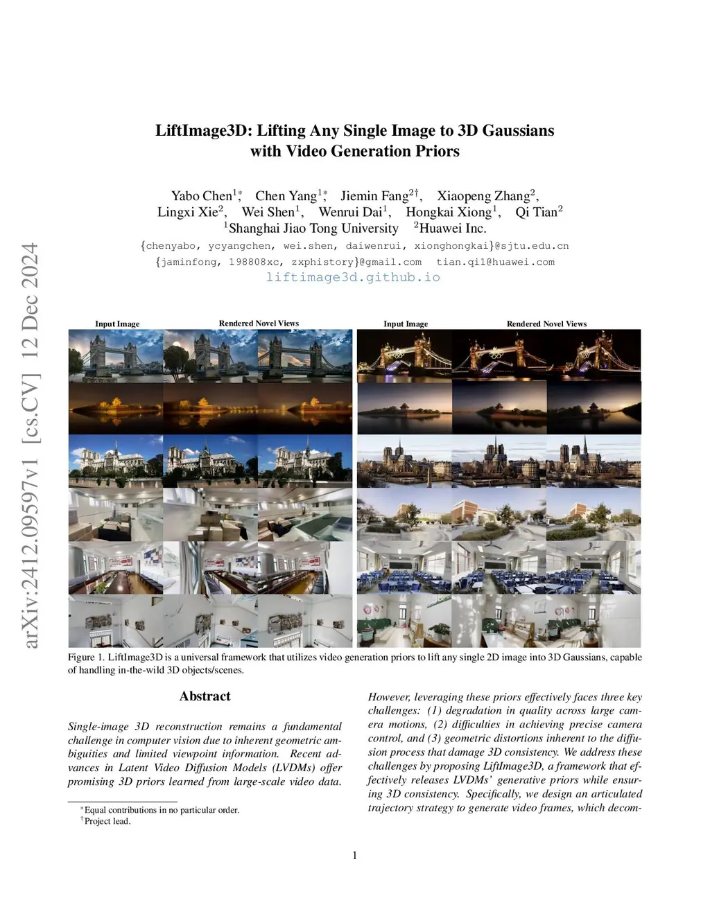 LiftImage3D: Lifting Any Single Image to 3D Gaussians with Video