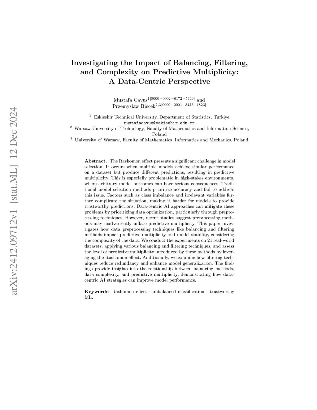 The Rashomon effect presents a significant challenge in model selection. It occurs when multiple models achieve similar performance on a dataset but produce different predictions, resulting in predictive multiplicity. This is especially problematic in high-stakes environments, where arbitrary model outcomes can have serious consequences. Traditional model selection methods prioritize accuracy and fail to address this issue. Factors such as class imbalance and irrelevant variables further complicate the situation, making it harder for models to provide trustworthy predictions. Data-centric AI approaches can mitigate these problems by prioritizing data optimization, particularly through preprocessing techniques. However, recent studies suggest preprocessing methods may inadvertently inflate predictive multiplicity. This paper investigates how data preprocessing techniques like balancing and filtering methods impact predictive multiplicity and model stability, considering the complexity of the data. We conduct the experiments on 21 real-world datasets, applying various balancing and filtering techniques, and assess the level of predictive multiplicity introduced by these methods by leveraging the Rashomon effect. Additionally, we examine how filtering techniques reduce redundancy and enhance model generalization. The findings provide insights into the relationship between balancing methods, data complexity, and predictive multiplicity, demonstrating how data-centric AI strategies can improve model performance.