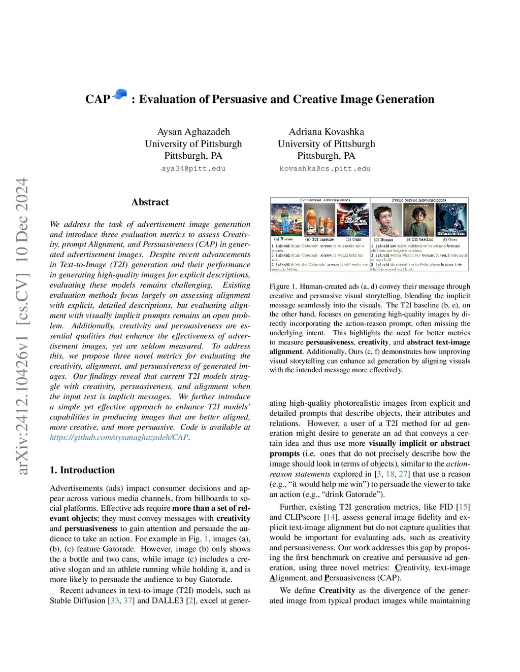 CAP: Evaluation of Persuasive and Creative Image Generation
