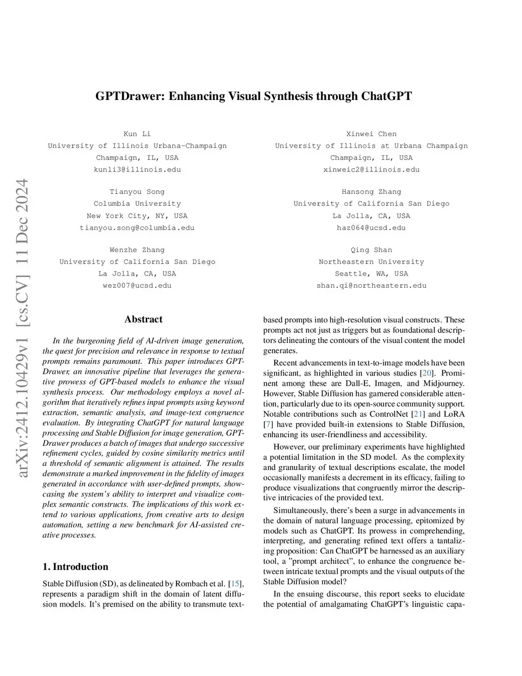 In the burgeoning field of AI-driven image generation, the quest for precision and relevance in response to textual prompts remains paramount. This paper introduces GPTDrawer, an innovative pipeline that leverages the generative prowess of GPT-based models to enhance the visual synthesis process. Our methodology employs a novel algorithm that iteratively refines input prompts using keyword extraction, semantic analysis, and image-text congruence evaluation. By integrating ChatGPT for natural language processing and Stable Diffusion for image generation, GPTDrawer produces a batch of images that undergo successive refinement cycles, guided by cosine similarity metrics until a threshold of semantic alignment is attained. The results demonstrate a marked improvement in the fidelity of images generated in accordance with user-defined prompts, showcasing the system's ability to interpret and visualize complex semantic constructs. The implications of this work extend to various applications, from creative arts to design automation, setting a new benchmark for AI-assisted creative processes.