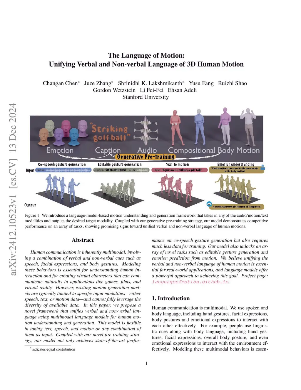 The Language of Motion: Unifying Verbal and Non-verbal Language of 3D