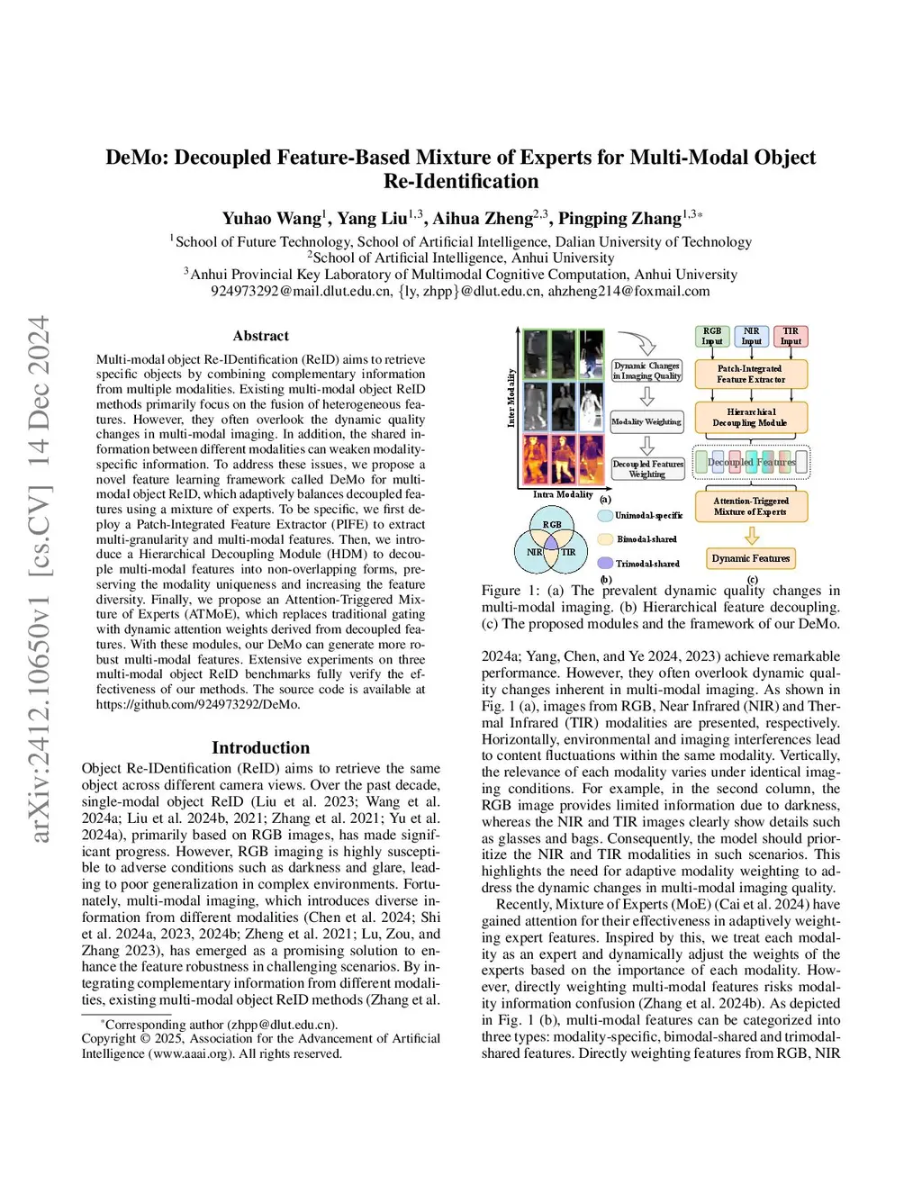 Multi-modal object Re-IDentification (ReID) aims to retrieve specific objects by combining complementary information from multiple modalities. Existing multi-modal object ReID methods primarily focus on the fusion of heterogeneous features. However, they often overlook the dynamic quality changes in multi-modal imaging. In addition, the shared information between different modalities can weaken modality-specific information. To address these issues, we propose a novel feature learning framework called DeMo for multi-modal object ReID, which adaptively balances decoupled features using a mixture of experts. To be specific, we first deploy a Patch-Integrated Feature Extractor (PIFE) to extract multi-granularity and multi-modal features. Then, we introduce a Hierarchical Decoupling Module (HDM) to decouple multi-modal features into non-overlapping forms, preserving the modality uniqueness and increasing the feature diversity. Finally, we propose an Attention-Triggered Mixture of Experts (ATMoE), which replaces traditional gating with dynamic attention weights derived from decoupled features. With these modules, our DeMo can generate more robust multi-modal features. Extensive experiments on three multi-modal object ReID benchmarks fully verify the effectiveness of our methods. The source code is available at https://github.com/924973292/DeMo.