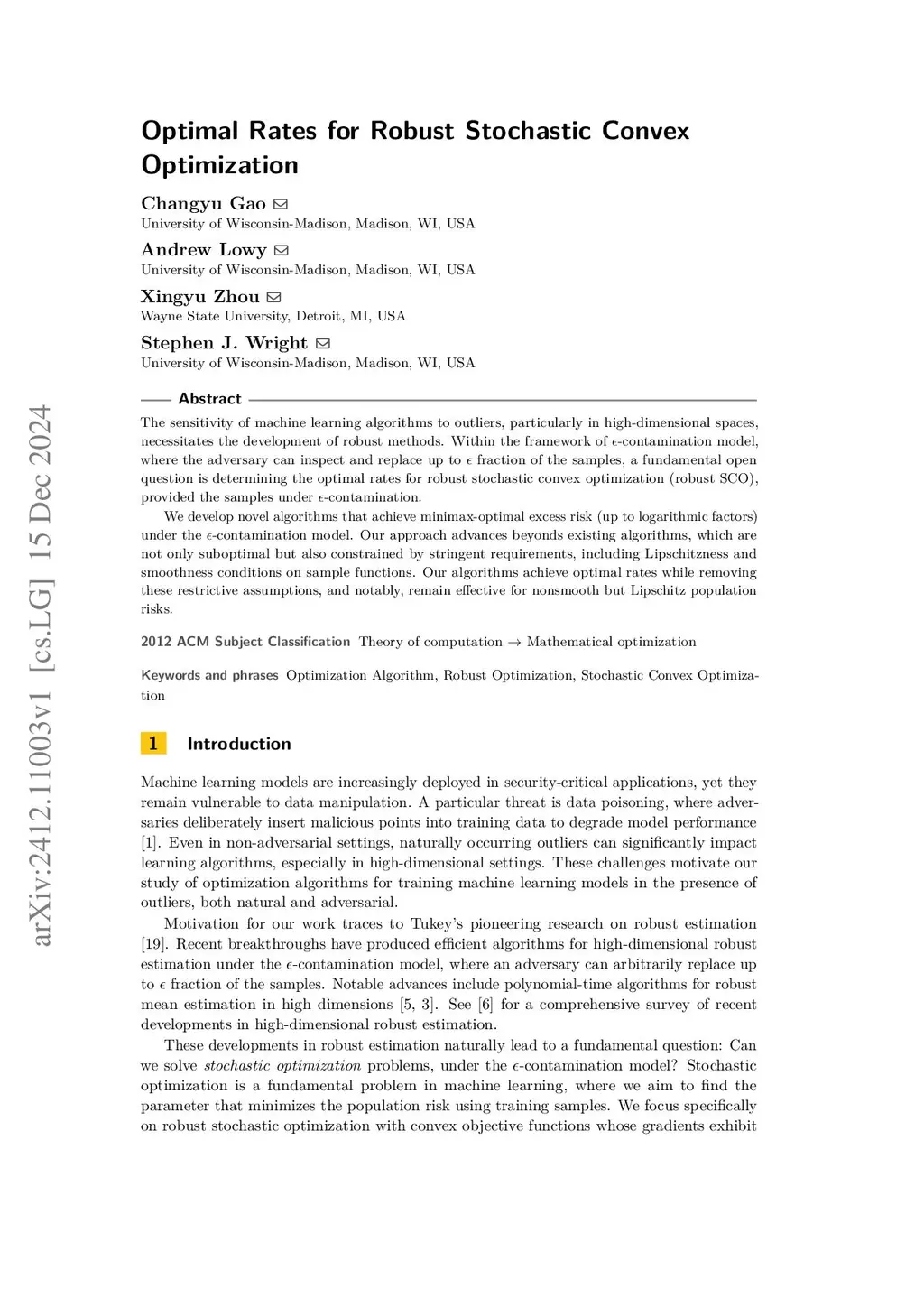 Machine learning algorithms in high-dimensional settings are highly susceptible to the influence of even a small fraction of structured outliers, making robust optimization techniques essential. In particular, within the -contamination model, where an adversary can inspect and replace up to an -fraction of the samples, a fundamental open problem is determining the optimal rates for robust stochastic convex optimization (SCO) under such contamination. We develop novel algorithms that achieve minimax-optimal excess risk (up to logarithmic factors) under the -contamination model. Our approach improves over existing algorithms, which are not only suboptimal but also require stringent assumptions, including Lipschitz continuity and smoothness of individual sample functions. By contrast, our optimal algorithms do not require these stringent assumptions, assuming only population-level smoothness of the loss. Moreover, our algorithms can be adapted to handle the case in which the covariance parameter is unknown, and can be extended to nonsmooth population risks via convolutional smoothing. We complement our algorithmic developments with a tight information-theoretic lower bound for robust SCO.