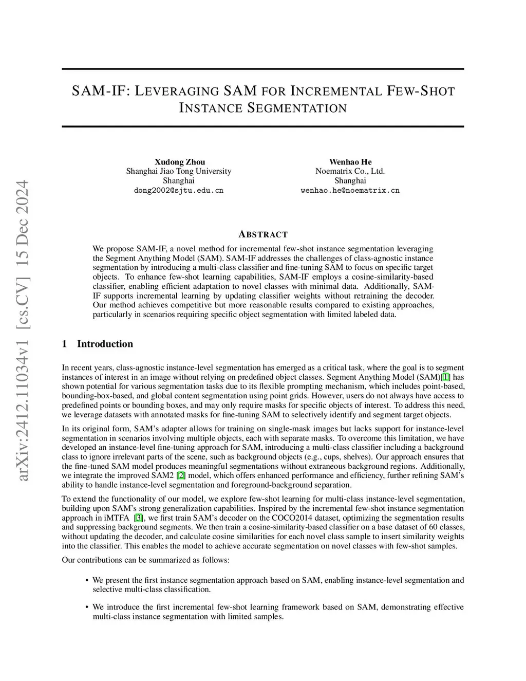 We propose SAM-IF, a novel method for incremental few-shot instance segmentation leveraging the Segment Anything Model (SAM). SAM-IF addresses the challenges of class-agnostic instance segmentation by introducing a multi-class classifier and fine-tuning SAM to focus on specific target objects. To enhance few-shot learning capabilities, SAM-IF employs a cosine-similarity-based classifier, enabling efficient adaptation to novel classes with minimal data. Additionally, SAM-IF supports incremental learning by updating classifier weights without retraining the decoder. Our method achieves competitive but more reasonable results compared to existing approaches, particularly in scenarios requiring specific object segmentation with limited labeled data.