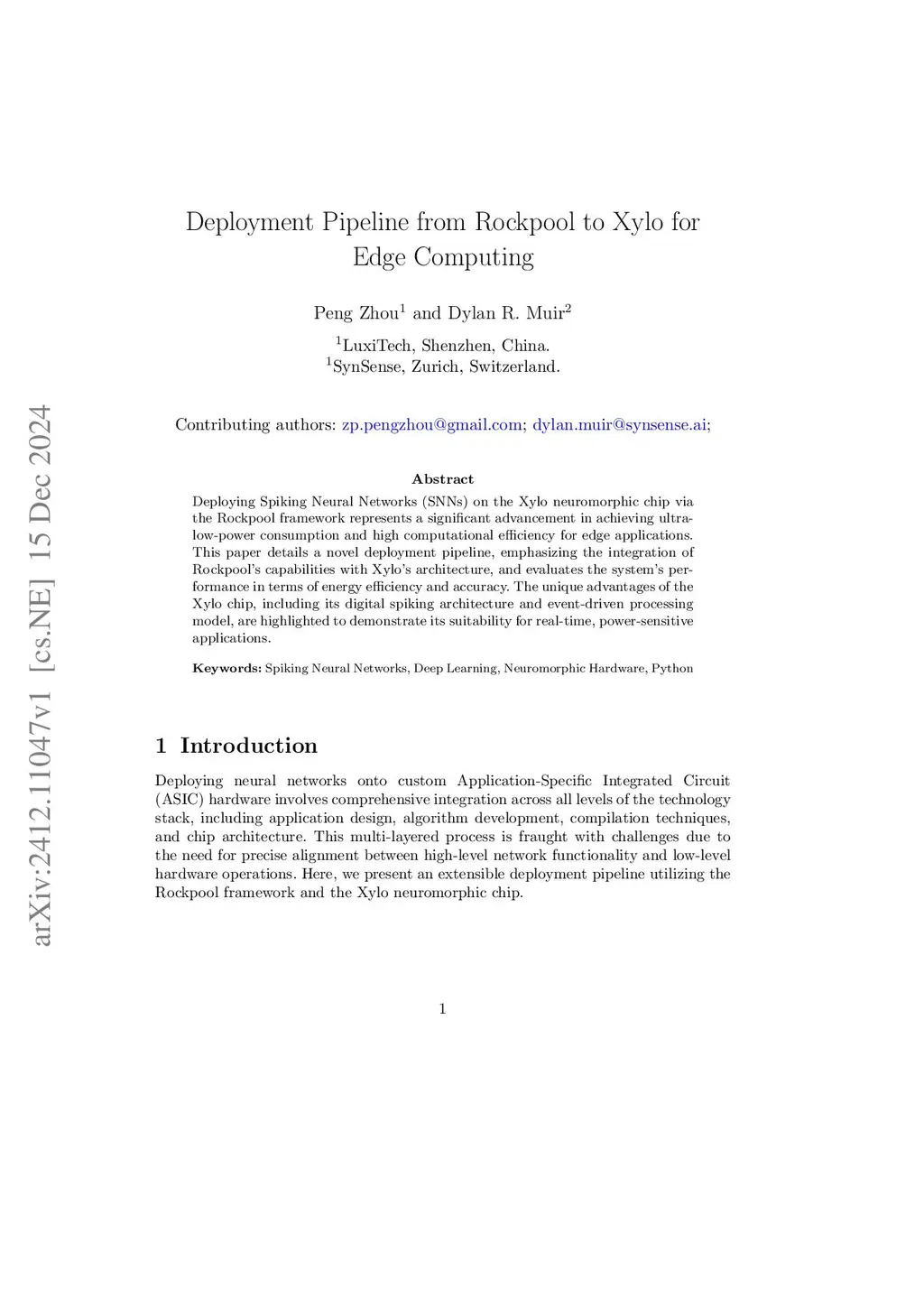 Deploying Spiking Neural Networks (SNNs) on the Xylo neuromorphic chip via the Rockpool framework represents a significant advancement in achieving ultra-low-power consumption and high computational efficiency for edge applications. This paper details a novel deployment pipeline, emphasizing the integration of Rockpool's capabilities with Xylo's architecture, and evaluates the system's performance in terms of energy efficiency and accuracy. The unique advantages of the Xylo chip, including its digital spiking architecture and event-driven processing model, are highlighted to demonstrate its suitability for real-time, power-sensitive applications.