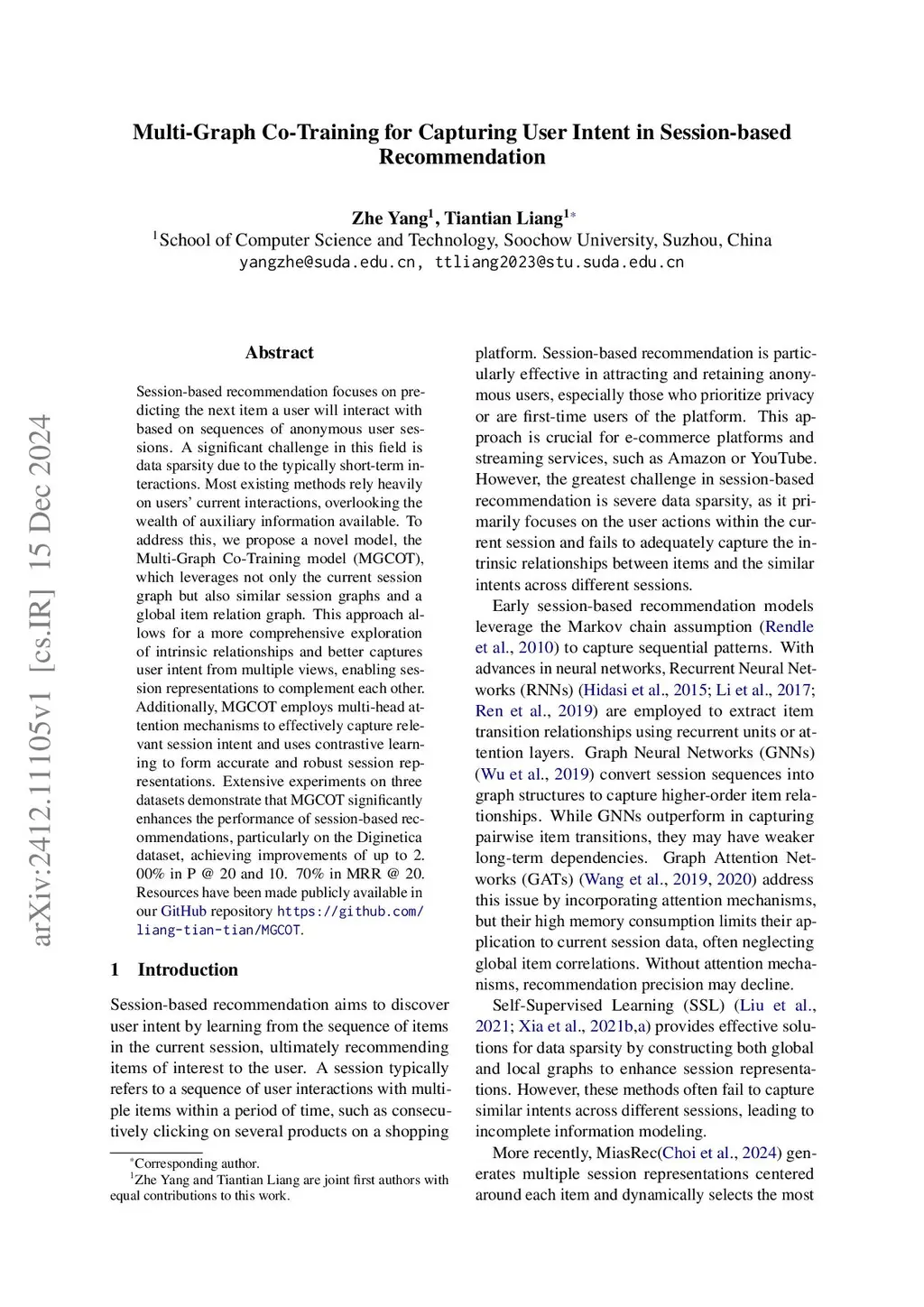 Multi-Graph Co-Training for Capturing User Intent in Session-based
