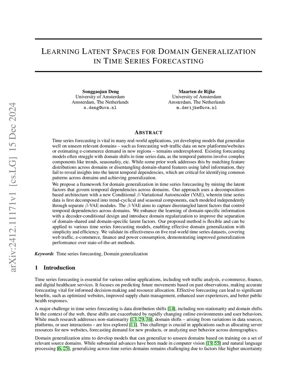Learning Latent Spaces for Domain Generalization in Time Series