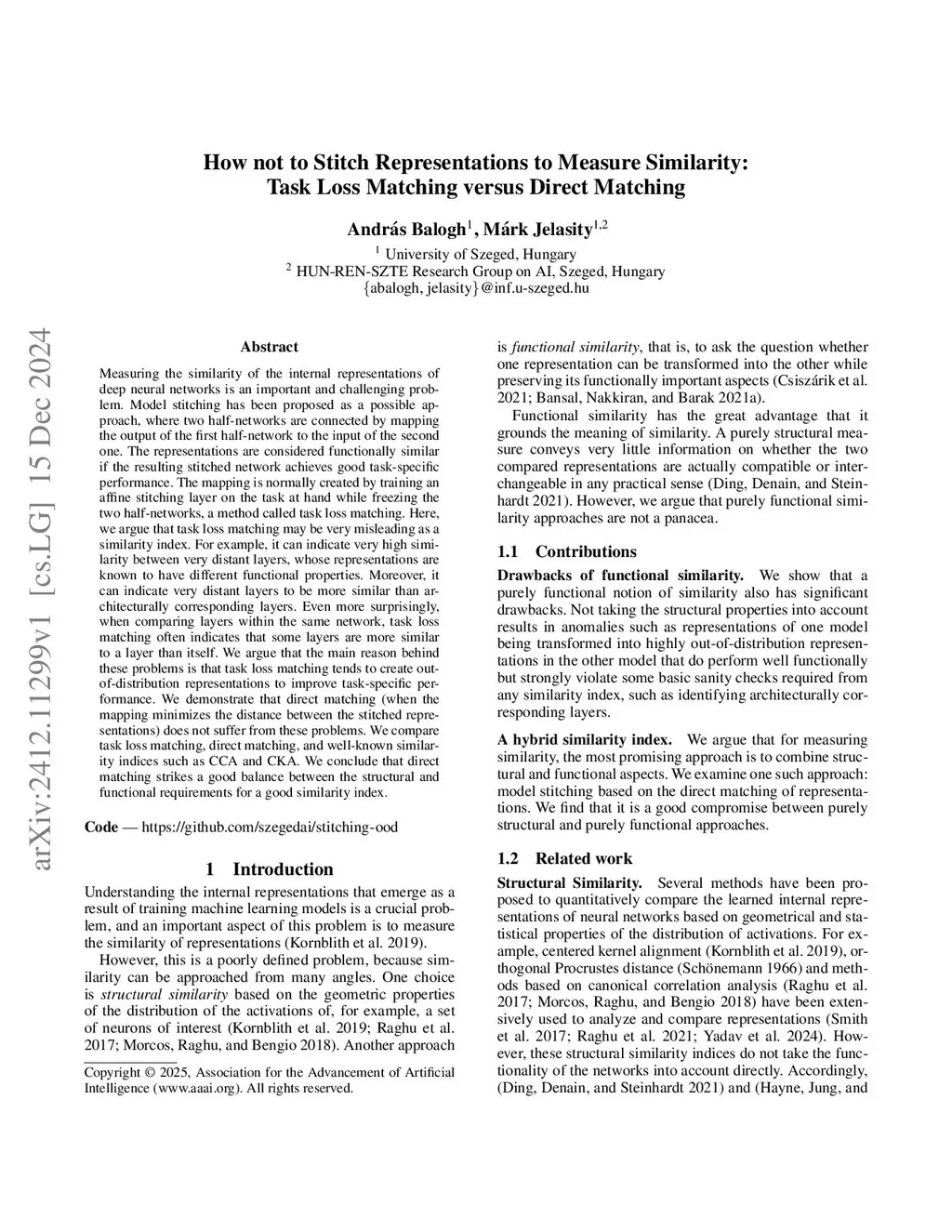 Measuring the similarity of the internal representations of deep neural networks is an important and challenging problem. Model stitching has been proposed as a possible approach, where two half-networks are connected by mapping the output of the first half-network to the input of the second one. The representations are considered functionally similar if the resulting stitched network achieves good task-specific performance. The mapping is normally created by training an affine stitching layer on the task at hand while freezing the two half-networks, a method called task loss matching. Here, we argue that task loss matching may be very misleading as a similarity index. For example, it can indicate very high similarity between very distant layers, whose representations are known to have different functional properties. Moreover, it can indicate very distant layers to be more similar than architecturally corresponding layers. Even more surprisingly, when comparing layers within the same network, task loss matching often indicates that some layers are more similar to a layer than itself. We argue that the main reason behind these problems is that task loss matching tends to create out-of-distribution representations to improve task-specific performance. We demonstrate that direct matching (when the mapping minimizes the distance between the stitched representations) does not suffer from these problems. We compare task loss matching, direct matching, and well-known similarity indices such as CCA and CKA. We conclude that direct matching strikes a good balance between the structural and functional requirements for a good similarity index.