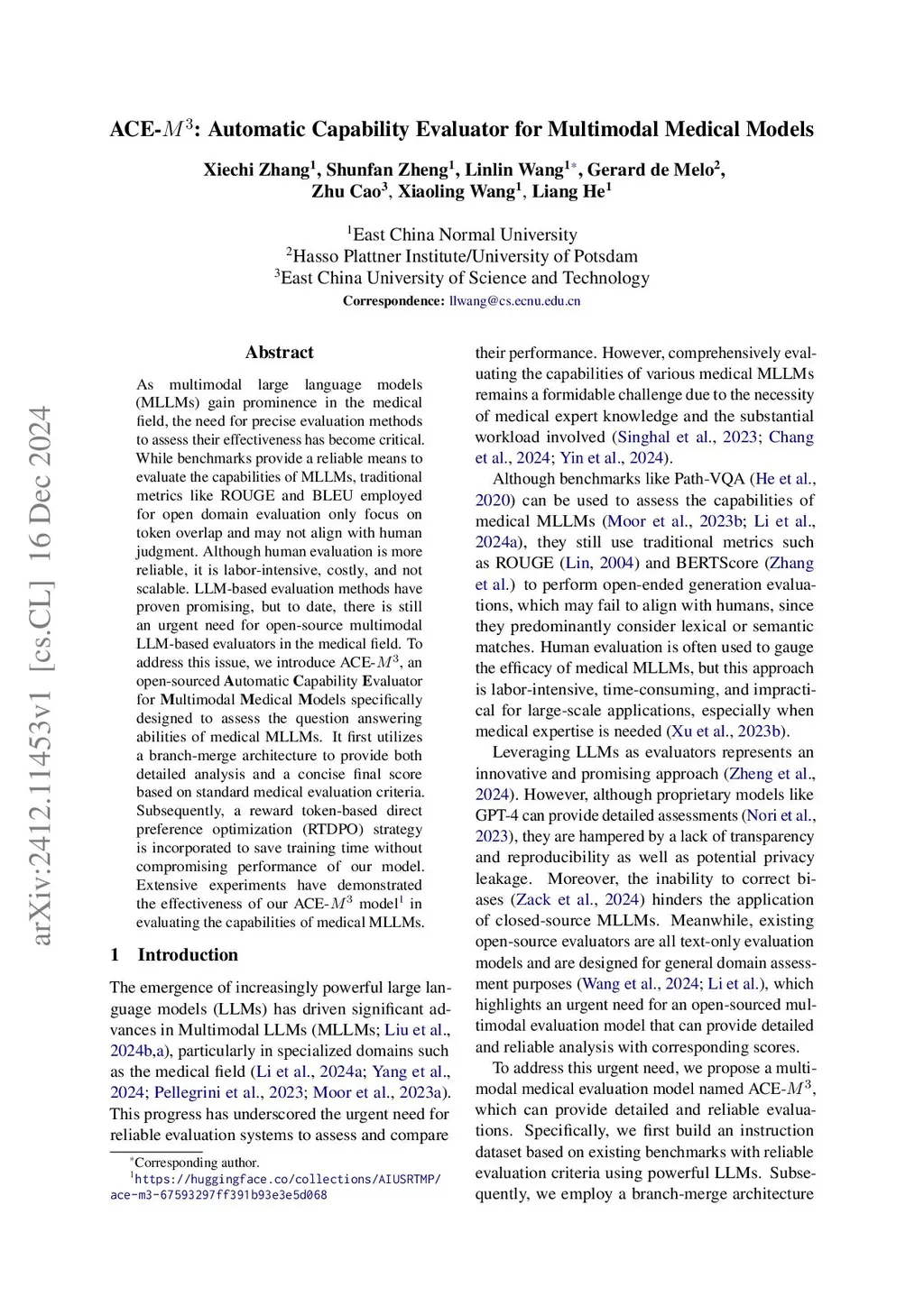 As multimodal large language models (MLLMs) gain prominence in the medical field, the need for precise evaluation methods to assess their effectiveness has become critical. While benchmarks provide a reliable means to evaluate the capabilities of MLLMs, traditional metrics like ROUGE and BLEU employed for open domain evaluation only focus on token overlap and may not align with human judgment. Although human evaluation is more reliable, it is labor-intensive, costly, and not scalable. LLM-based evaluation methods have proven promising, but to date, there is still an urgent need for open-source multimodal LLM-based evaluators in the medical field. To address this issue, we introduce ACE-, an open-sourced \textbf{A}utomatic \textbf{C}apability \textbf{E}valuator for \textbf{M}ultimodal \textbf{M}edical \textbf{M}odels specifically designed to assess the question answering abilities of medical MLLMs. It first utilizes a branch-merge architecture to provide both detailed analysis and a concise final score based on standard medical evaluation criteria. Subsequently, a reward token-based direct preference optimization (RTDPO) strategy is incorporated to save training time without compromising performance of our model. Extensive experiments have demonstrated the effectiveness of our ACE- model\footnote{\url{https://huggingface.co/collections/AIUSRTMP/ace-m3-67593297ff391b93e3e5d068}} in evaluating the capabilities of medical MLLMs.
