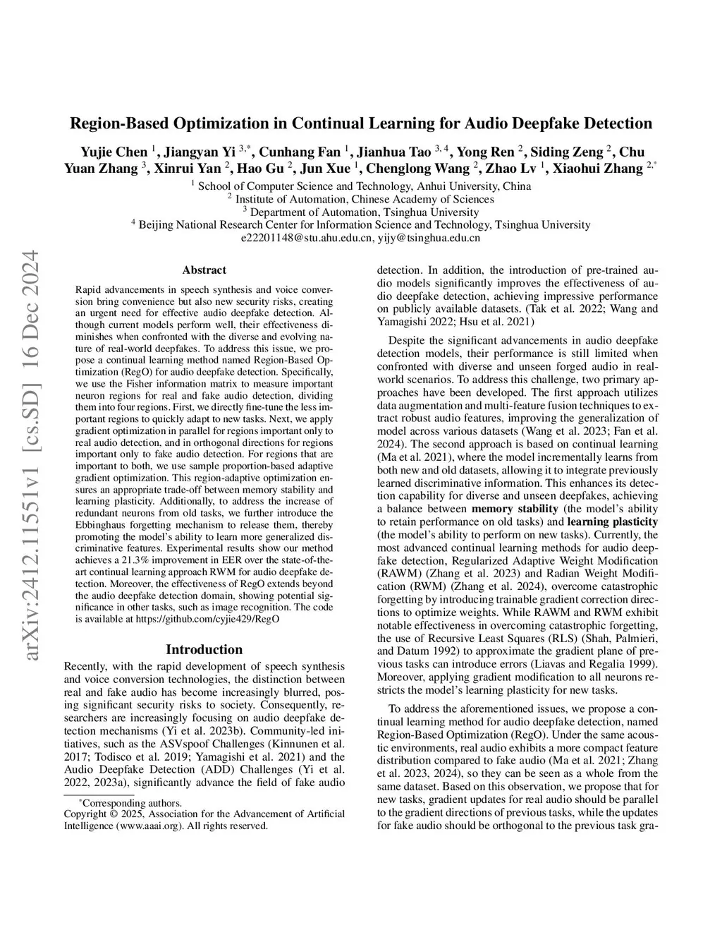 Region-Based Optimization in Continual Learning for Audio Deepfake