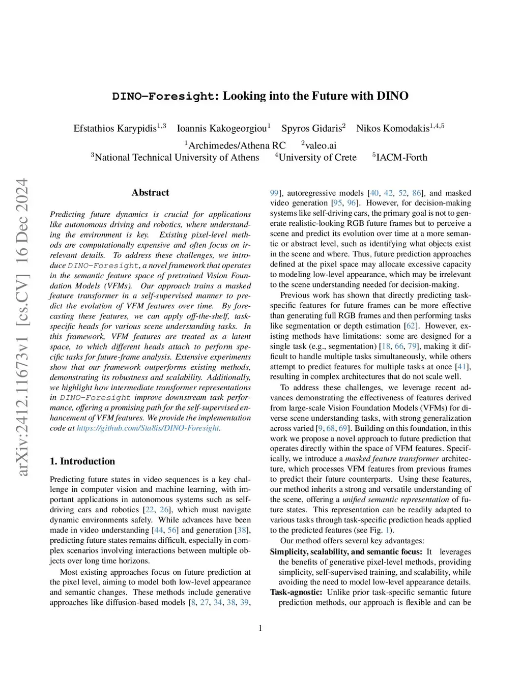 Predicting future dynamics is crucial for applications like autonomous driving and robotics, where understanding the environment is key. Existing pixel-level methods are computationally expensive and often focus on irrelevant details. To address these challenges, we introduce DINO-Foresight, a novel framework that operates in the semantic feature space of pretrained Vision Foundation Models (VFMs). Our approach trains a masked feature transformer in a self-supervised manner to predict the evolution of VFM features over time. By forecasting these features, we can apply off-the-shelf, task-specific heads for various scene understanding tasks. In this framework, VFM features are treated as a latent space, to which different heads attach to perform specific tasks for future-frame analysis. Extensive experiments show the very strong performance, robustness and scalability of our framework. Project page and code atthis https URL.