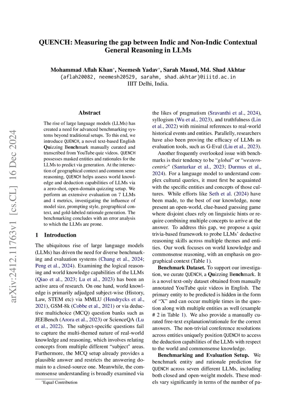 QUENCH: Measuring the gap between Indic and Non-Indic Contextual General