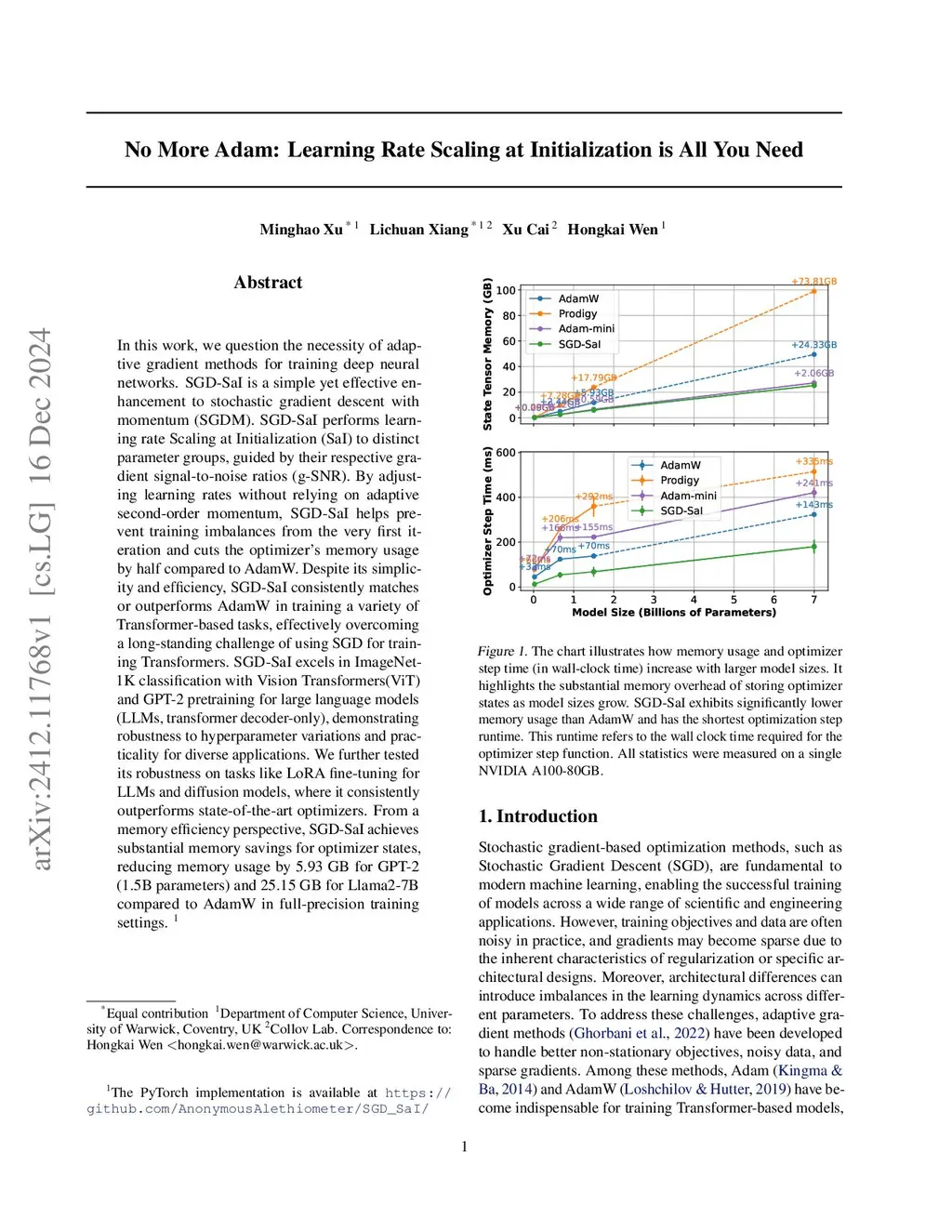 No More Adam: Learning Rate Scaling at Initialization is All You Need