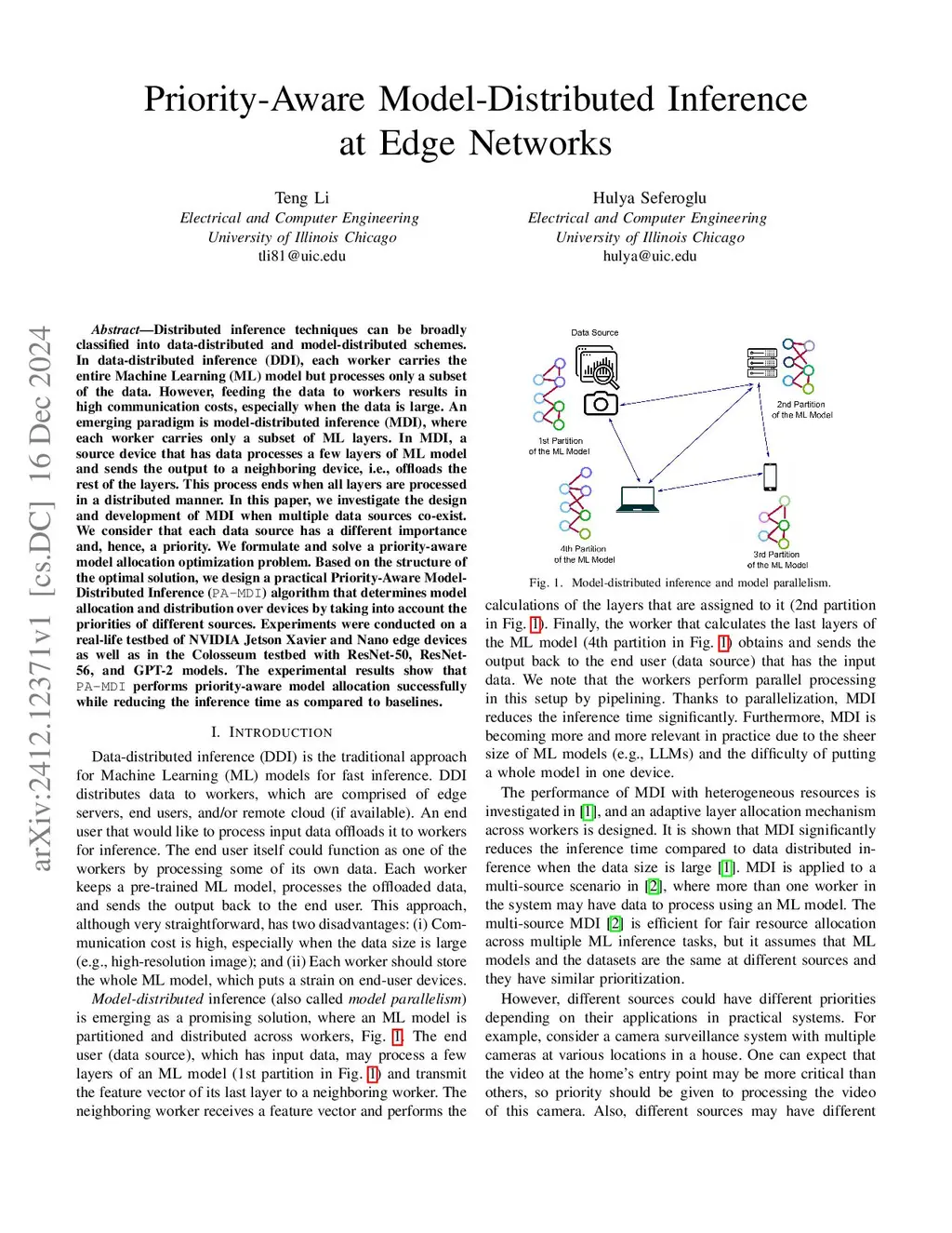 Priority-Aware Model-Distributed Inference at Edge Networks