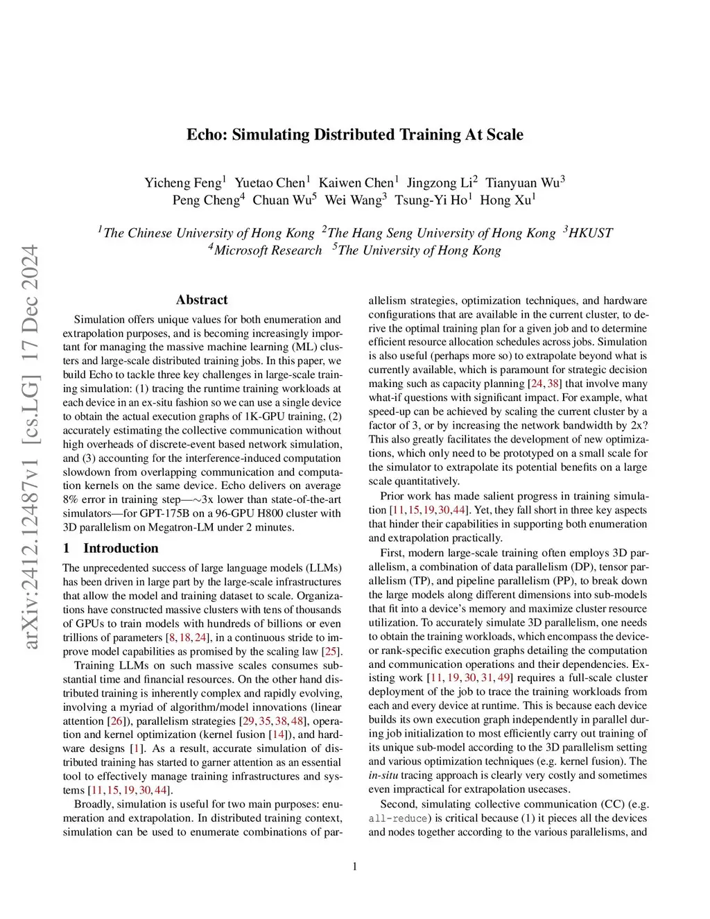 Echo: Simulating Distributed Training At Scale