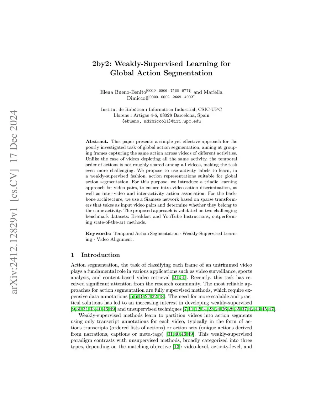 2by2: Weakly-Supervised Learning for Global Action Segmentation