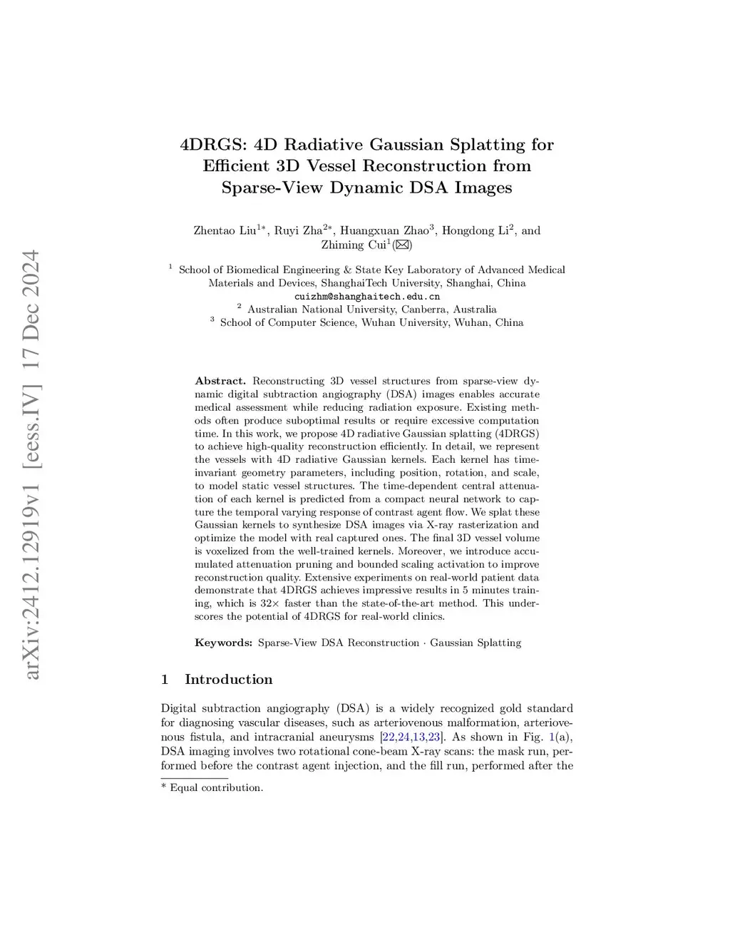 Reconstructing 3D vessel structures from sparse-view dynamic digital subtraction angiography (DSA) images enables accurate medical assessment while reducing radiation exposure. Existing methods often produce suboptimal results or require excessive computation time. In this work, we propose 4D radiative Gaussian splatting (4DRGS) to achieve high-quality reconstruction efficiently. In detail, we represent the vessels with 4D radiative Gaussian kernels. Each kernel has time-invariant geometry parameters, including position, rotation, and scale, to model static vessel structures. The time-dependent central attenuation of each kernel is predicted from a compact neural network to capture the temporal varying response of contrast agent flow. We splat these Gaussian kernels to synthesize DSA images via X-ray rasterization and optimize the model with real captured ones. The final 3D vessel volume is voxelized from the well-trained kernels. Moreover, we introduce accumulated attenuation pruning and bounded scaling activation to improve reconstruction quality. Extensive experiments on real-world patient data demonstrate that 4DRGS achieves impressive results in 5 minutes training, which is 32x faster than the state-of-the-art method. This underscores the potential of 4DRGS for real-world clinics.