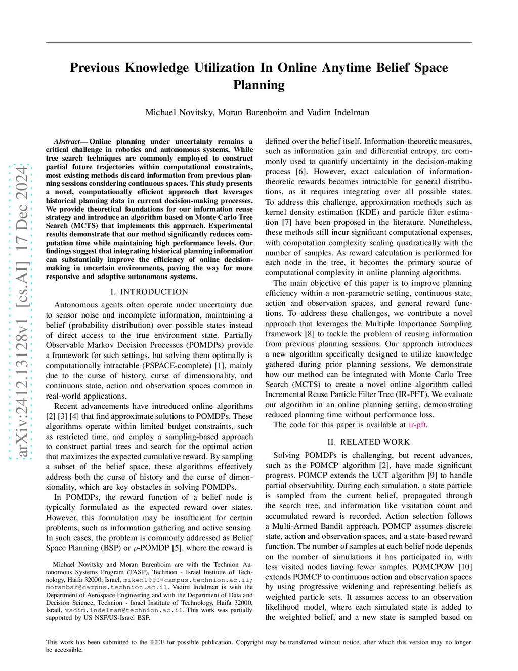 Previous Knowledge Utilization In Online Anytime Belief Space Planning