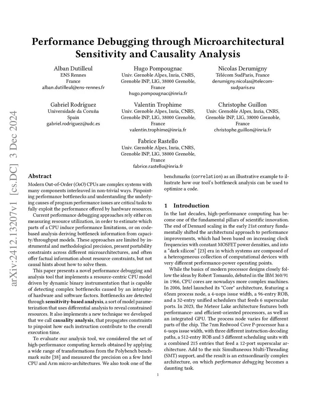 Modern Out-of-Order (OoO) CPUs are complex systems with many components interleaved in non-trivial ways. Pinpointing performance bottlenecks and understanding the underlying causes of program performance issues are critical tasks to fully exploit the performance offered by hardware resources. Current performance debugging approaches rely either on measuring resource utilization, in order to estimate which parts of a CPU induce performance limitations, or on code-based analysis deriving bottleneck information from capacity/throughput models. These approaches are limited by instrumental and methodological precision, present portability constraints across different microarchitectures, and often offer factual information about resource constraints, but not causal hints about how to solve them. This paper presents a novel performance debugging and analysis tool that implements a resource-centric CPU model driven by dynamic binary instrumentation that is capable of detecting complex bottlenecks caused by an interplay of hardware and software factors. Bottlenecks are detected through sensitivity-based analysis, a sort of model parameterization that uses differential analysis to reveal constrained resources. It also implements a new technique we developed that we call causality analysis, that propagates constraints to pinpoint how each instruction contribute to the overall execution time. To evaluate our analysis tool, we considered the set of high-performance computing kernels obtained by applying a wide range of transformations from the Polybench benchmark suite and measured the precision on a few Intel CPU and Arm micro-architectures. We also took one of the benchmarks (correlation) as an illustrative example to illustrate how our tool's bottleneck analysis can be used to optimize a code.