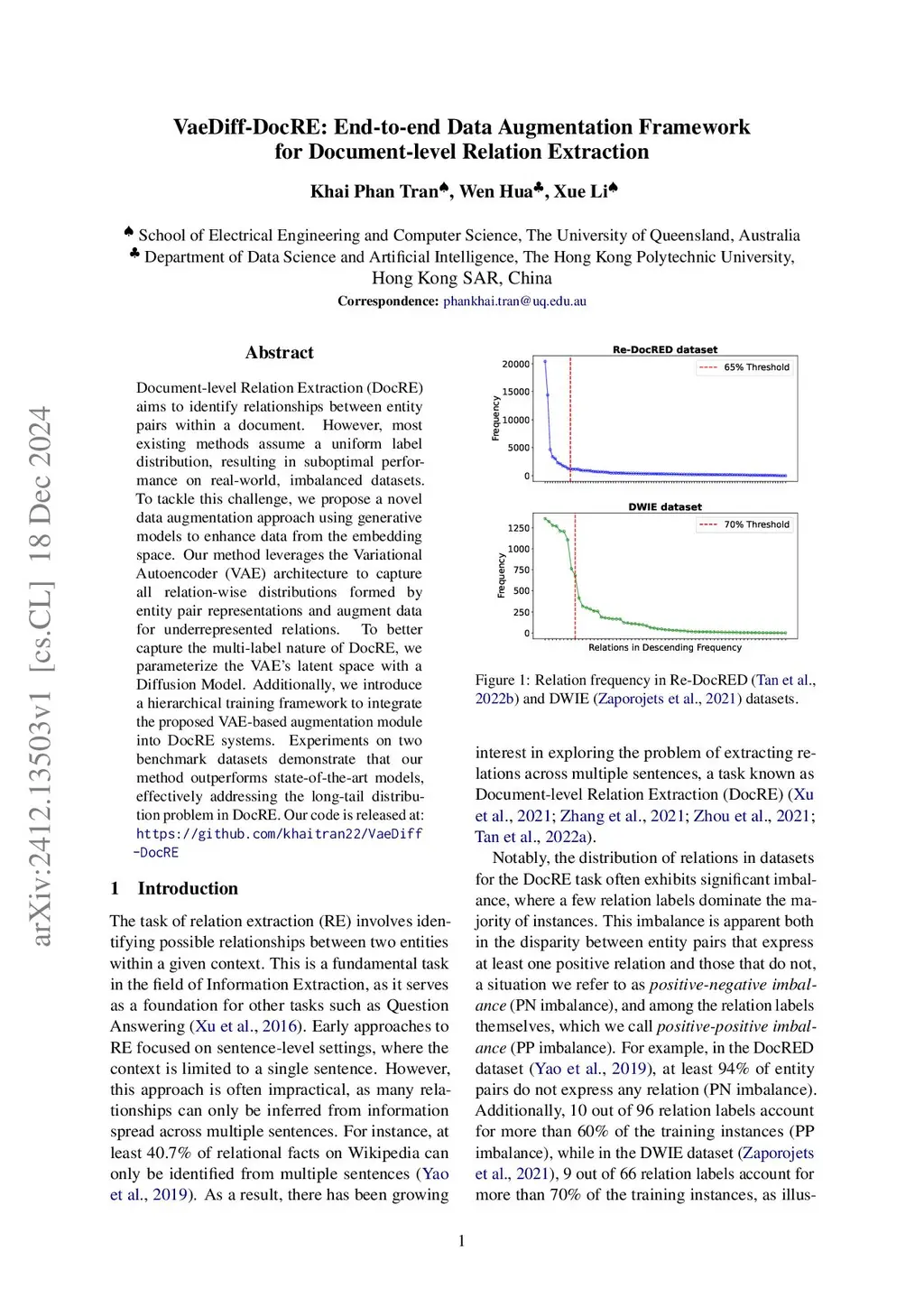 VaeDiff-DocRE: End-to-end Data Augmentation Framework for Document-level Relation Extraction