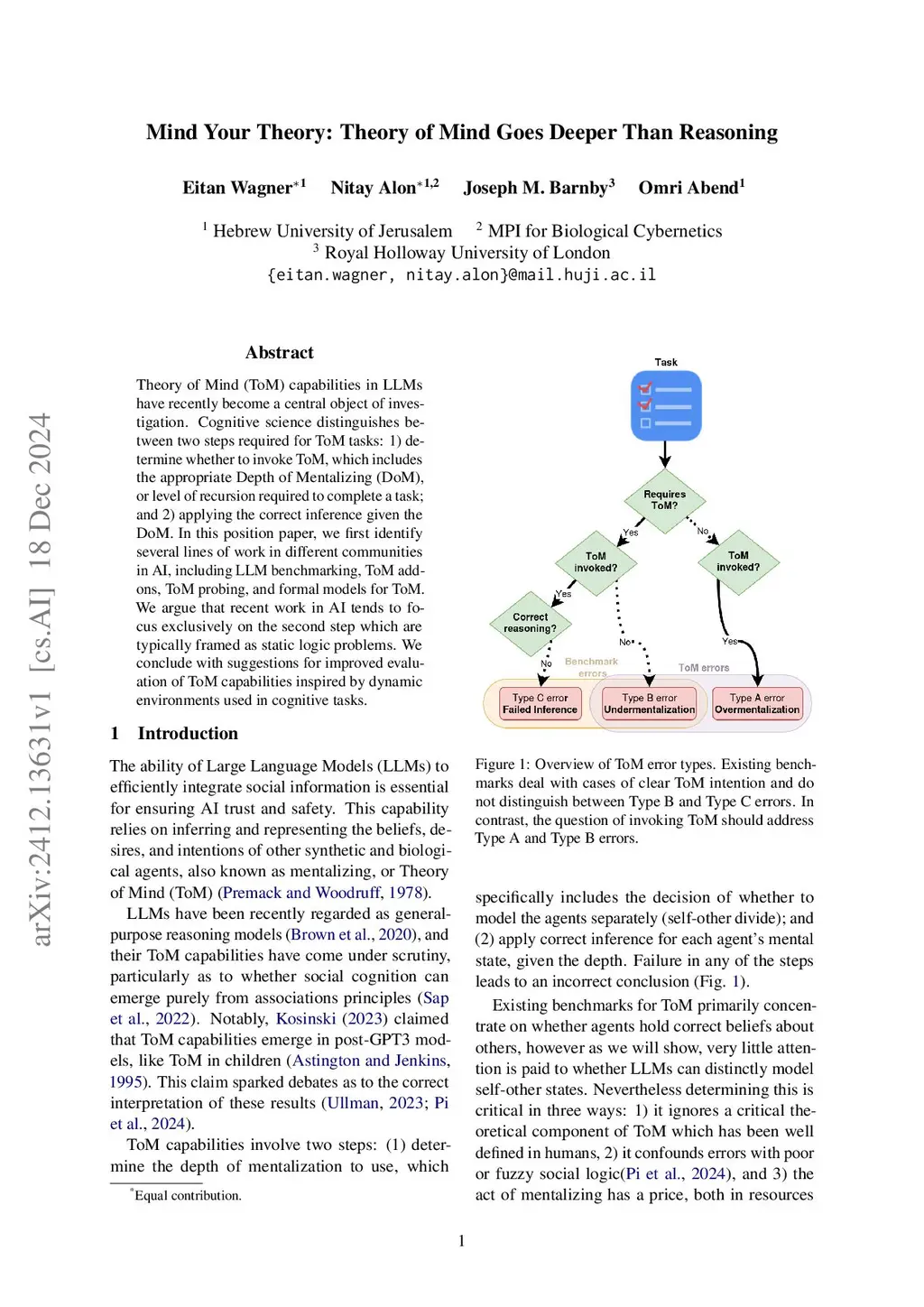 Mind Your Theory: Theory of Mind Goes Deeper Than Reasoning