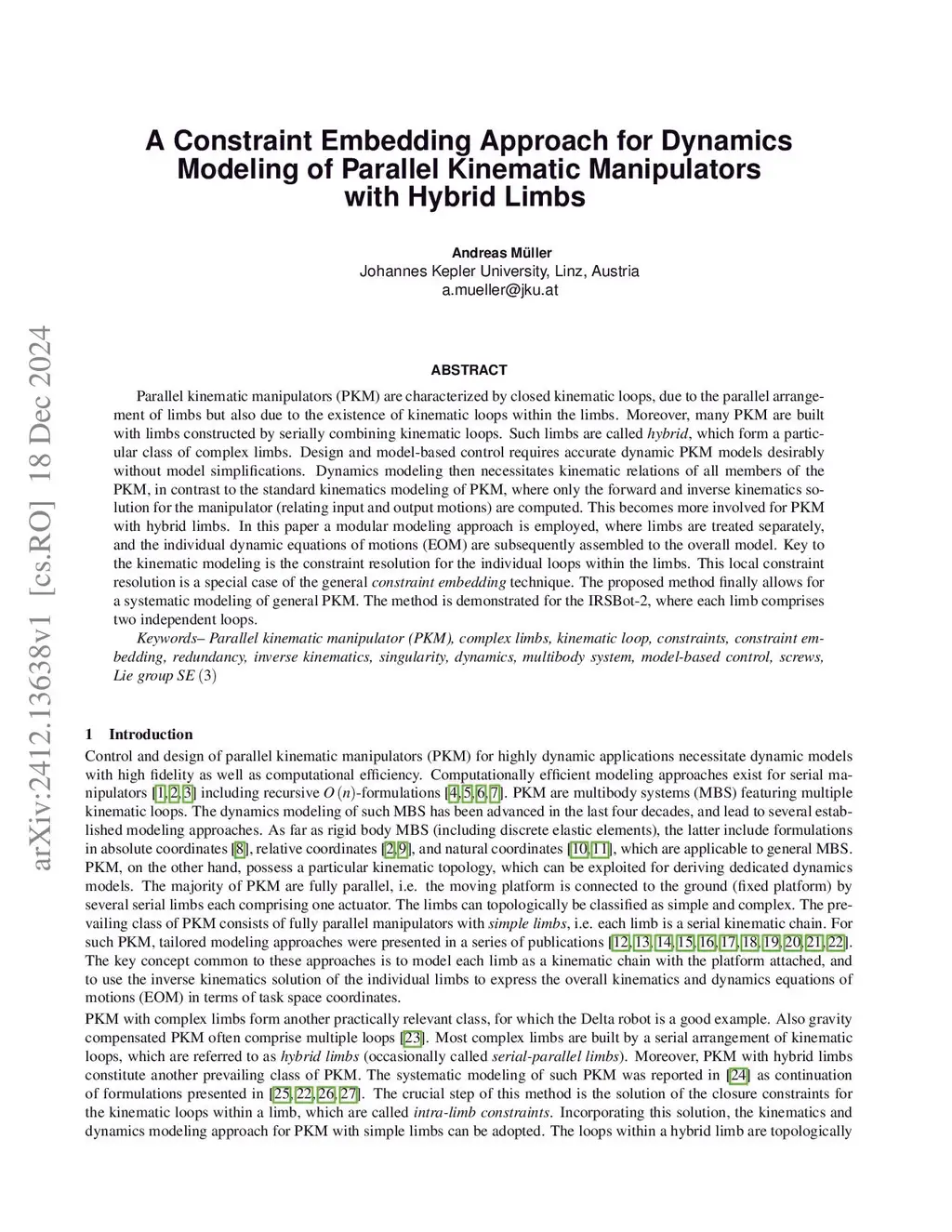 Parallel kinematic manipulators (PKM) are characterized by closed kinematic loops, due to the parallel arrangement of limbs but also due to the existence of kinematic loops within the limbs. Moreover, many PKM are built with limbs constructed by serially combining kinematic loops. Such limbs are called hybrid, which form a particular class of complex limbs. Design and model-based control requires accurate dynamic PKM models desirably without model simplifications. Dynamics modeling then necessitates kinematic relations of all members of the PKM, in contrast to the standard kinematics modeling of PKM, where only the forward and inverse kinematics solution for the manipulator (relating input and output motions) are computed. This becomes more involved for PKM with hybrid limbs. In this paper a modular modeling approach is employed, where limbs are treated separately, and the individual dynamic equations of motions (EOM) are subsequently assembled to the overall model. Key to the kinematic modeling is the constraint resolution for the individual loops within the limbs. This local constraint resolution is a special case of the general \emph{constraint embedding} technique. The proposed method finally allows for a systematic modeling of general PKM. The method is demonstrated for the IRSBot-2, where each limb comprises two independent loops.