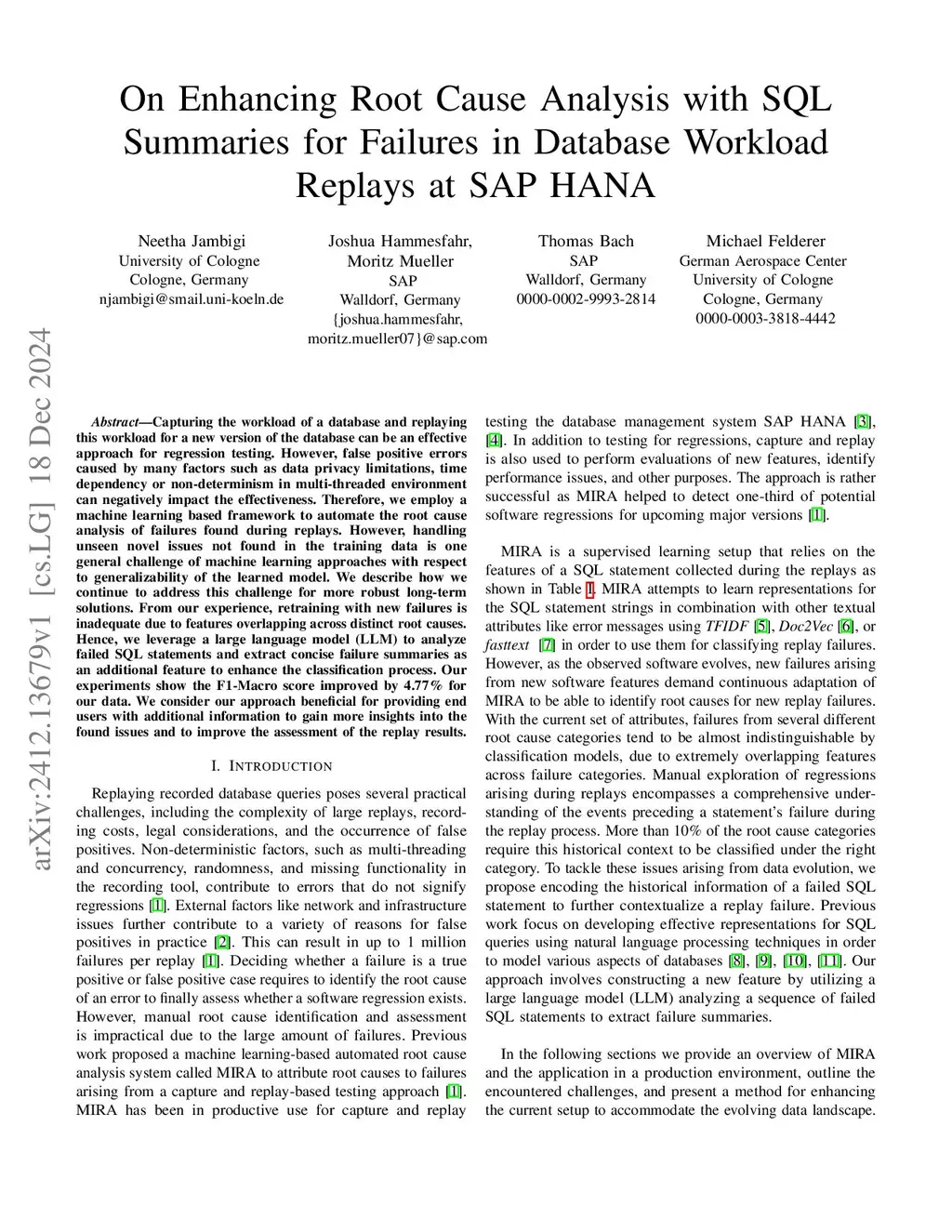 On Enhancing Root Cause Analysis with SQL Summaries for Failures in
