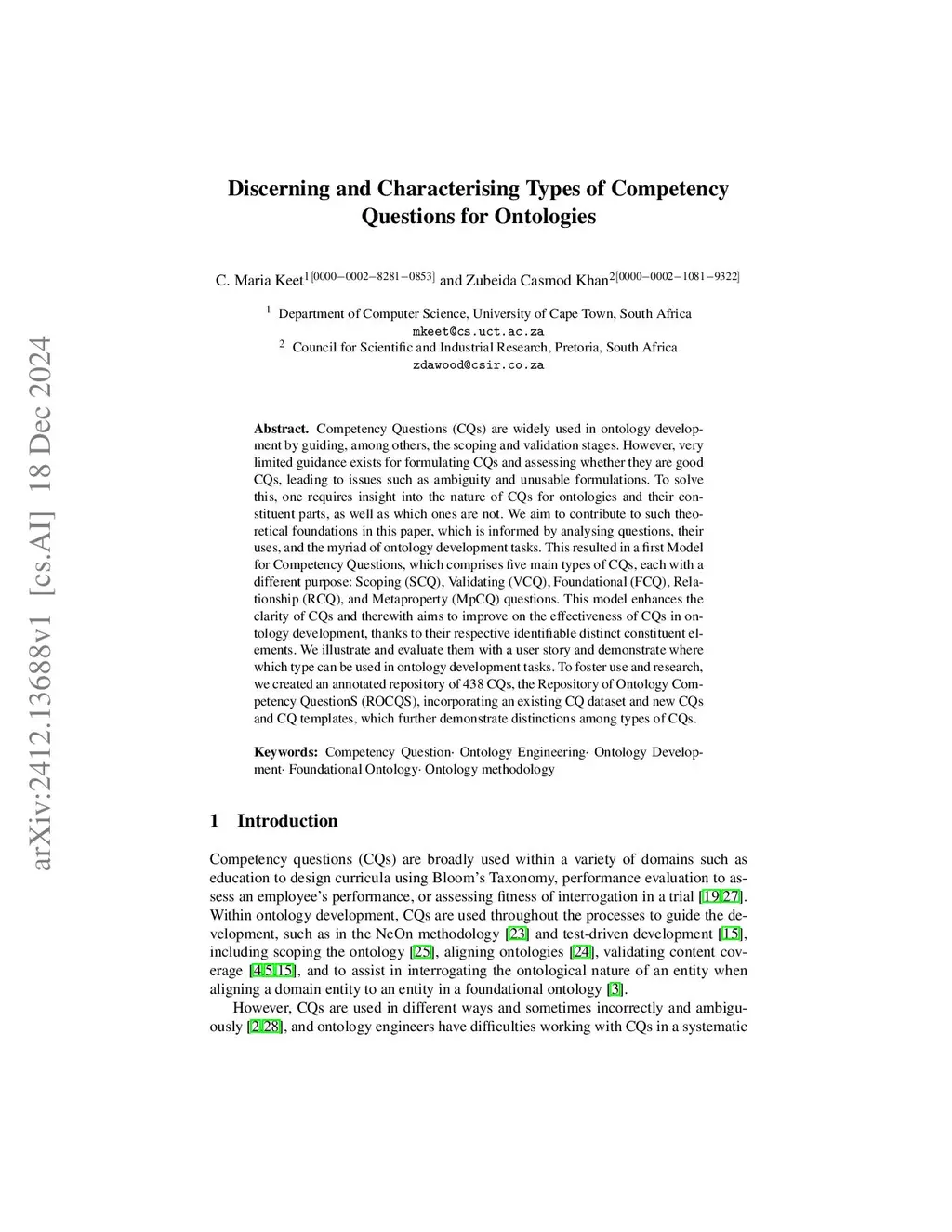 Discerning and Characterising Types of Competency Questions for