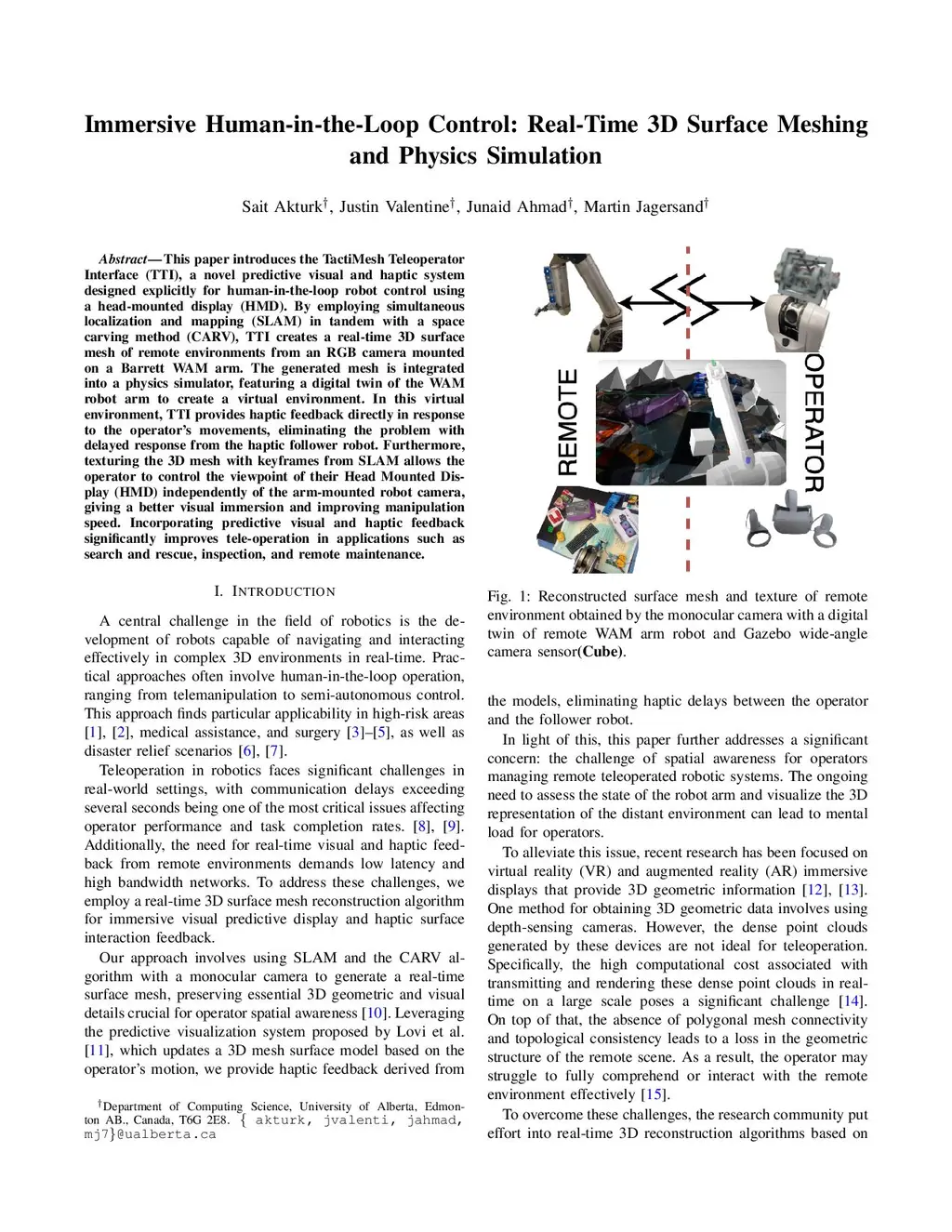Immersive Human-in-the-Loop Control: Real-Time 3D Surface Meshing and