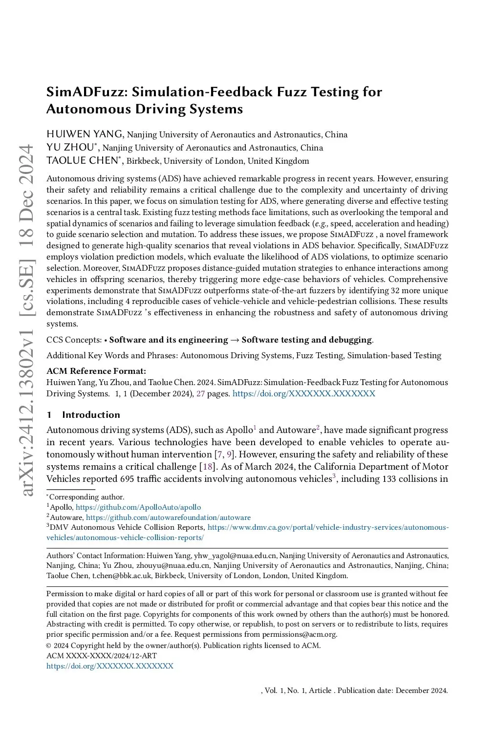 Autonomous driving systems (ADS) have achieved remarkable progress in recent years. However, ensuring their safety and reliability remains a critical challenge due to the complexity and uncertainty of driving scenarios. In this paper, we focus on simulation testing for ADS, where generating diverse and effective testing scenarios is a central task. Existing fuzz testing methods face limitations, such as overlooking the temporal and spatial dynamics of scenarios and failing to leverage simulation feedback (e.g., speed, acceleration and heading) to guide scenario selection and mutation. To address these issues, we propose SimADFuzz, a novel framework designed to generate high-quality scenarios that reveal violations in ADS behavior. Specifically, SimADFuzz employs violation prediction models, which evaluate the likelihood of ADS violations, to optimize scenario selection. Moreover, SimADFuzz proposes distance-guided mutation strategies to enhance interactions among vehicles in offspring scenarios, thereby triggering more edge-case behaviors of vehicles. Comprehensive experiments demonstrate that SimADFuzz outperforms state-of-the-art fuzzers by identifying 32 more unique violations, including 4 reproducible cases of vehicle-vehicle and vehicle-pedestrian collisions. These results demonstrate SimADFuzz's effectiveness in enhancing the robustness and safety of autonomous driving systems.