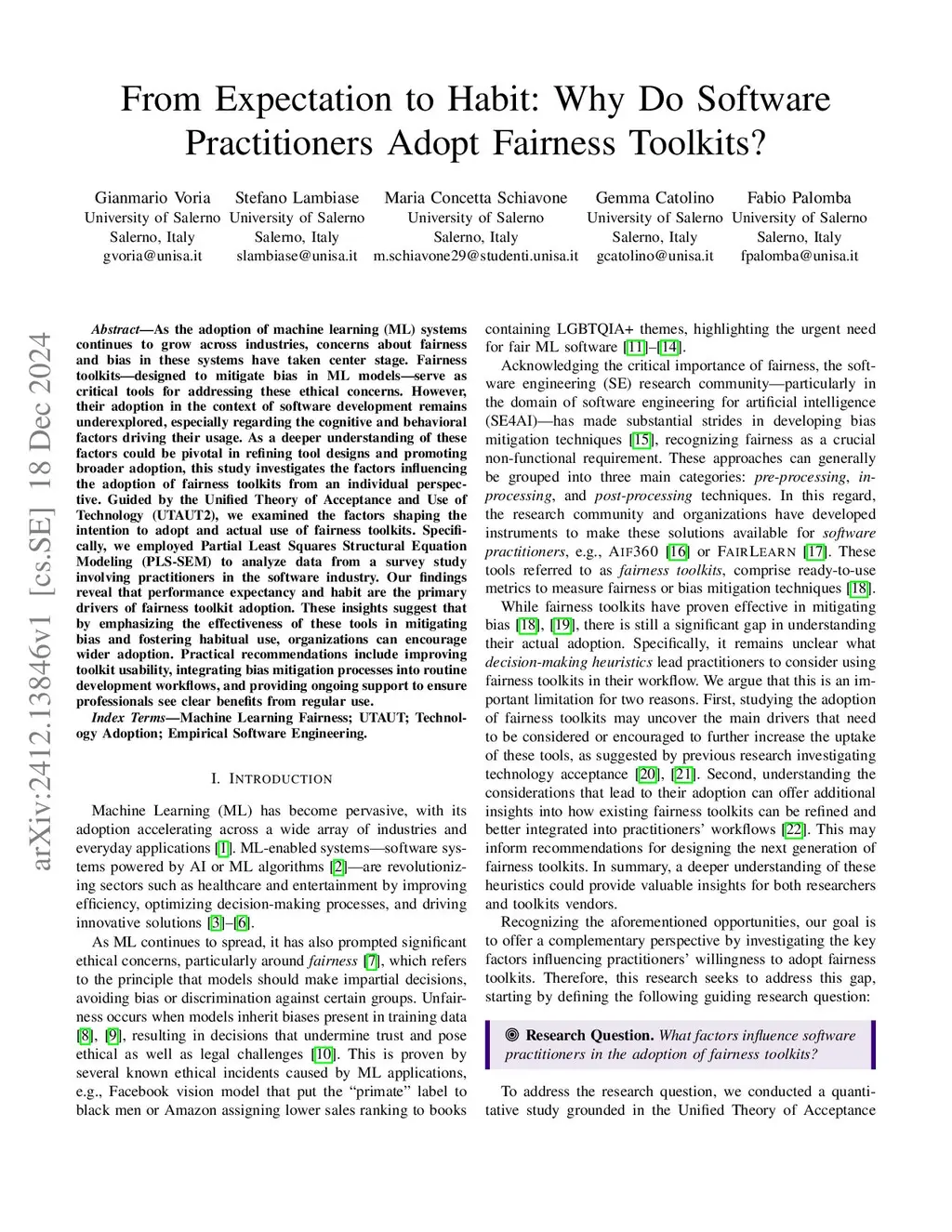 As the adoption of machine learning (ML) systems continues to grow across industries, concerns about fairness and bias in these systems have taken center stage. Fairness toolkits, designed to mitigate bias in ML models, serve as critical tools for addressing these ethical concerns. However, their adoption in the context of software development remains underexplored, especially regarding the cognitive and behavioral factors driving their usage. As a deeper understanding of these factors could be pivotal in refining tool designs and promoting broader adoption, this study investigates the factors influencing the adoption of fairness toolkits from an individual perspective. Guided by the Unified Theory of Acceptance and Use of Technology (UTAUT2), we examined the factors shaping the intention to adopt and actual use of fairness toolkits. Specifically, we employed Partial Least Squares Structural Equation Modeling (PLS-SEM) to analyze data from a survey study involving practitioners in the software industry. Our findings reveal that performance expectancy and habit are the primary drivers of fairness toolkit adoption. These insights suggest that by emphasizing the effectiveness of these tools in mitigating bias and fostering habitual use, organizations can encourage wider adoption. Practical recommendations include improving toolkit usability, integrating bias mitigation processes into routine development workflows, and providing ongoing support to ensure professionals see clear benefits from regular use.