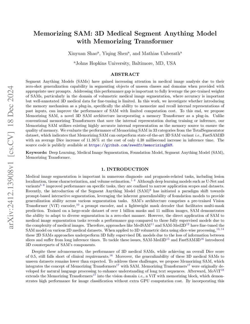 Memorizing SAM: 3D Medical Segment Anything Model with Memorizing