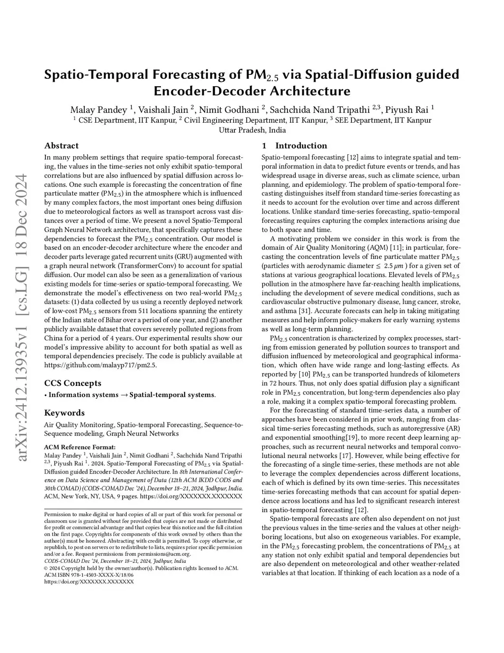 Spatio-Temporal Forecasting of PM2.5 via Spatial-Diffusion guided