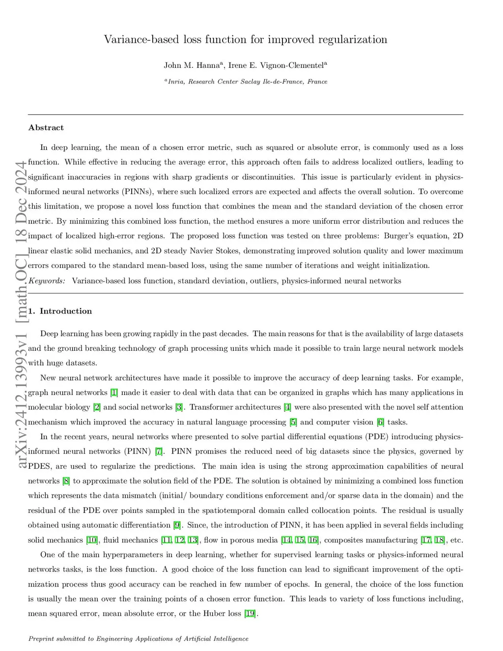 Improved Physics-informed neural networks loss function regularization with a variance-based term