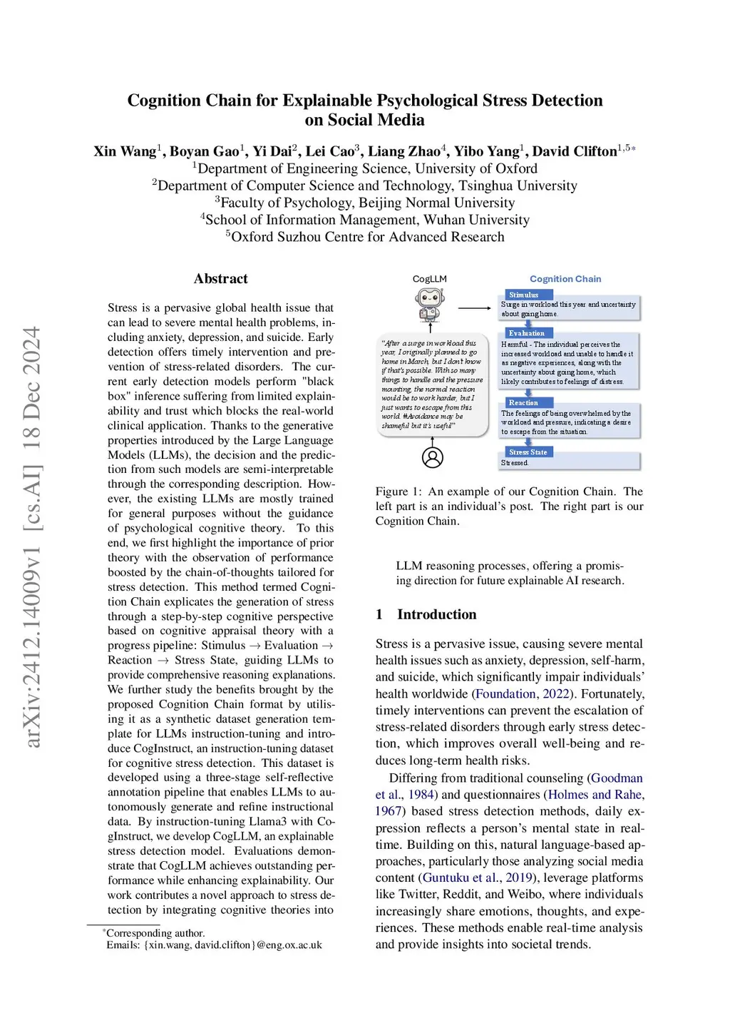 Cognition Chain for Explainable Psychological Stress Detection on Social