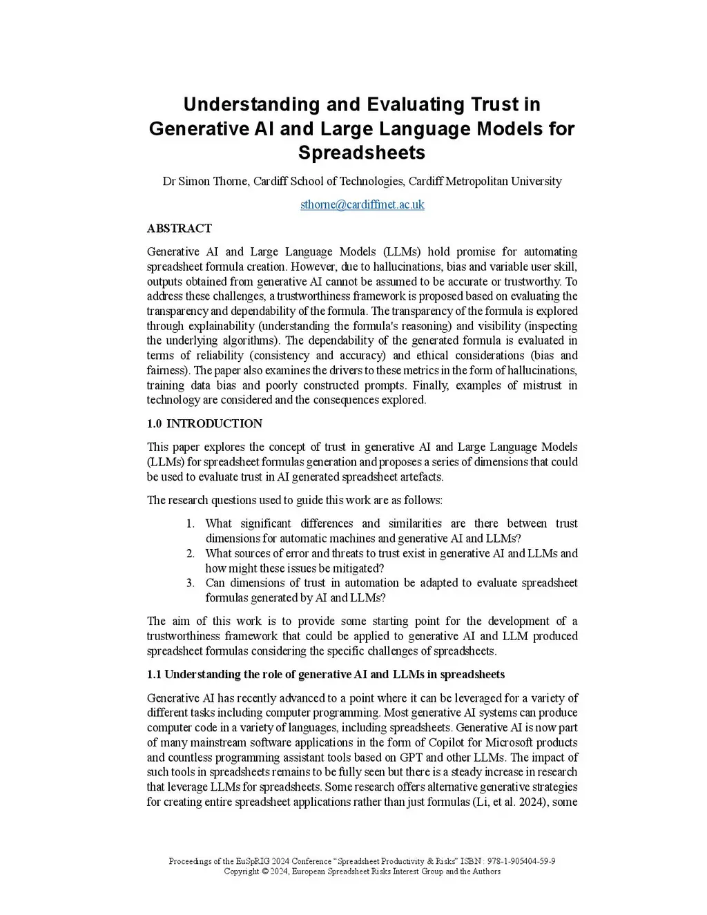 Generative AI and Large Language Models (LLMs) hold promise for automating spreadsheet formula creation. However, due to hallucinations, bias and variable user skill, outputs obtained from generative AI cannot be assumed to be accurate or trustworthy. To address these challenges, a trustworthiness framework is proposed based on evaluating the transparency and dependability of the formula. The transparency of the formula is explored through explainability (understanding the formula's reasoning) and visibility (inspecting the underlying algorithms). The dependability of the generated formula is evaluated in terms of reliability (consistency and accuracy) and ethical considerations (bias and fairness). The paper also examines the drivers to these metrics in the form of hallucinations, training data bias and poorly constructed prompts. Finally, examples of mistrust in technology are considered and the consequences explored.