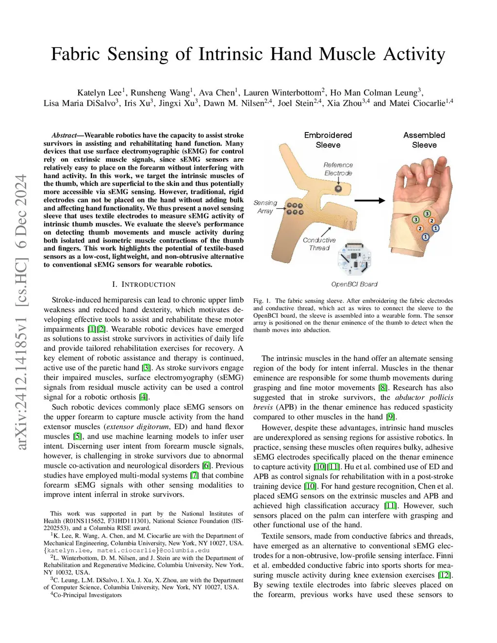 Fabric Sensing of Intrinsic Hand Muscle Activity