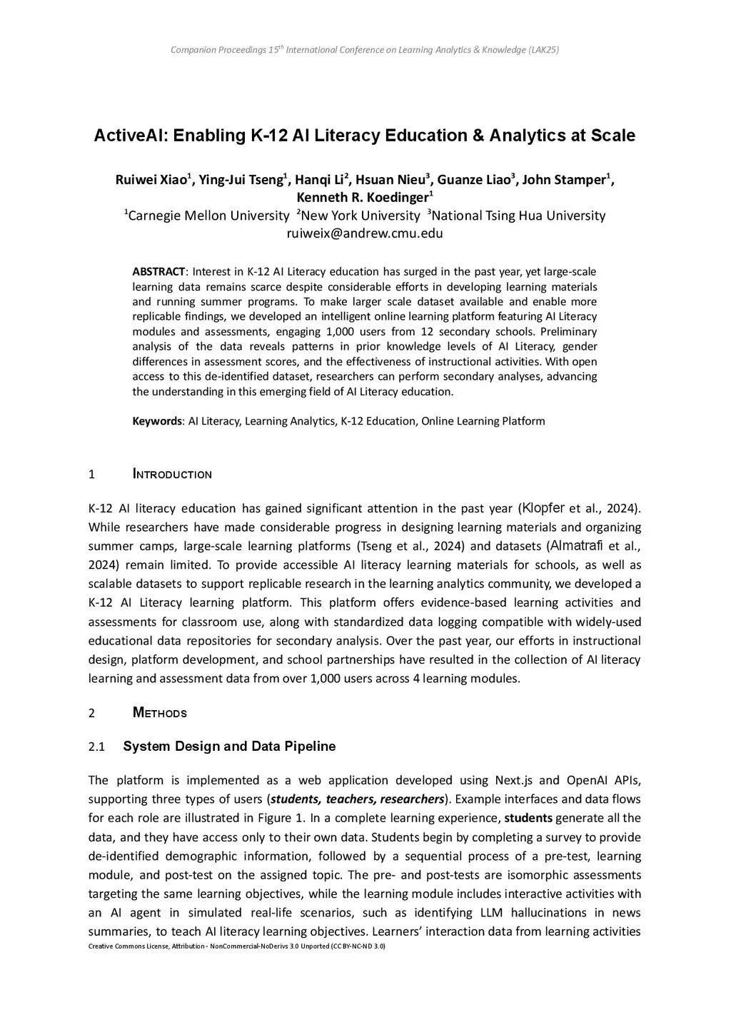 ActiveAI: Enabling K-12 AI Literacy Education & Analytics at Scale